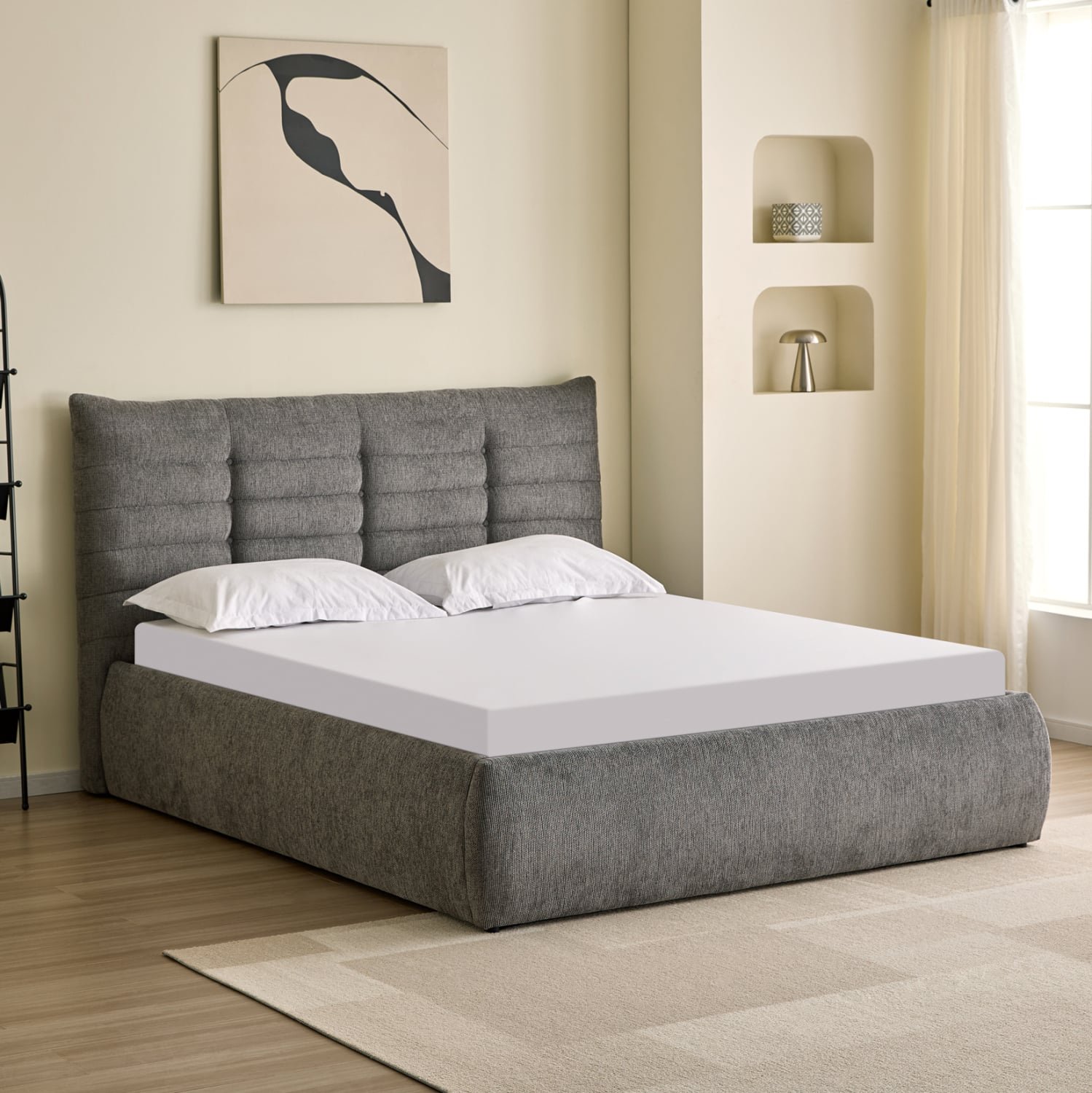 •Αισθητική υπεροχή με την καπιτονέ τεχνοτροπία στο κεφαλάρι