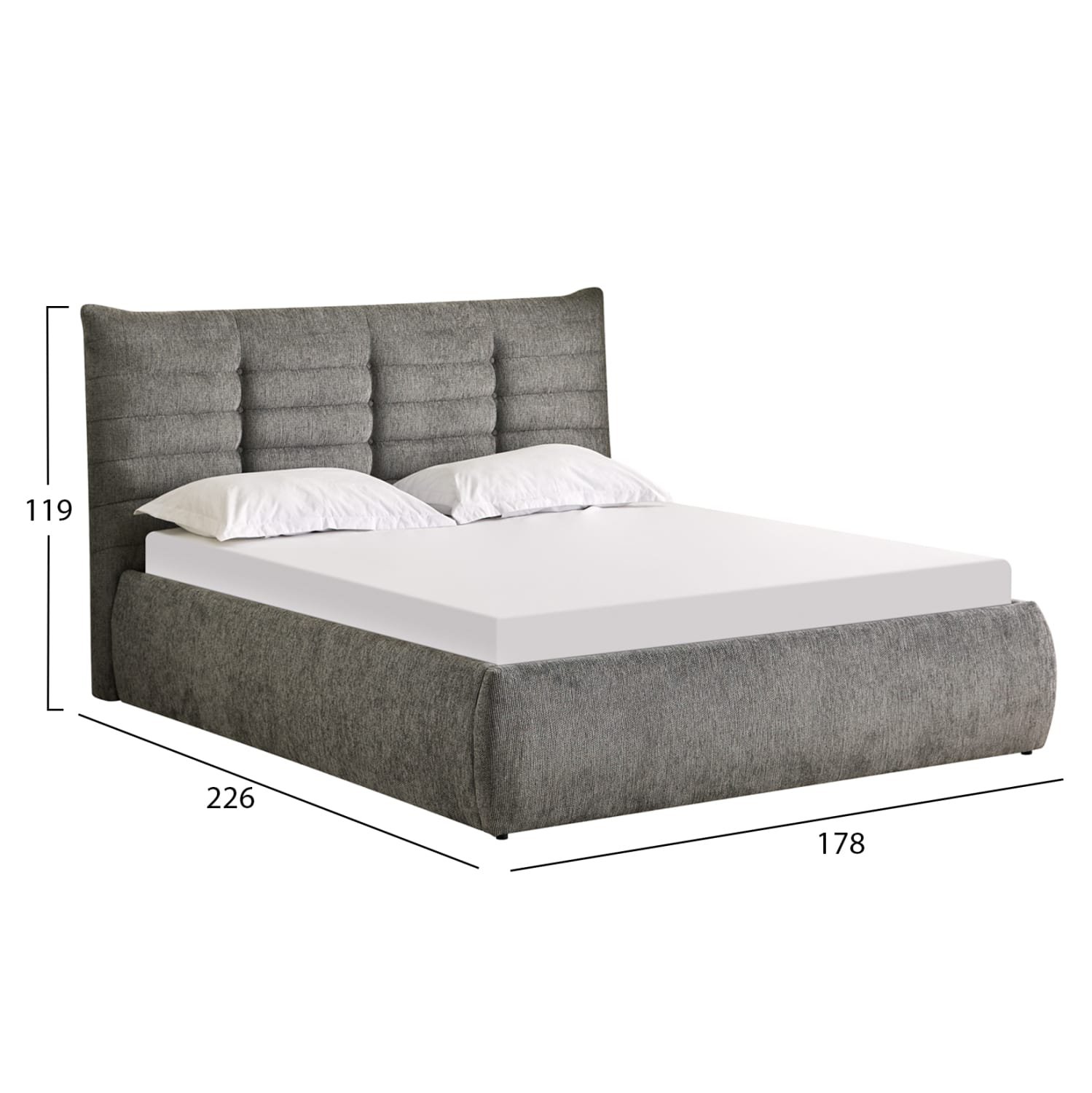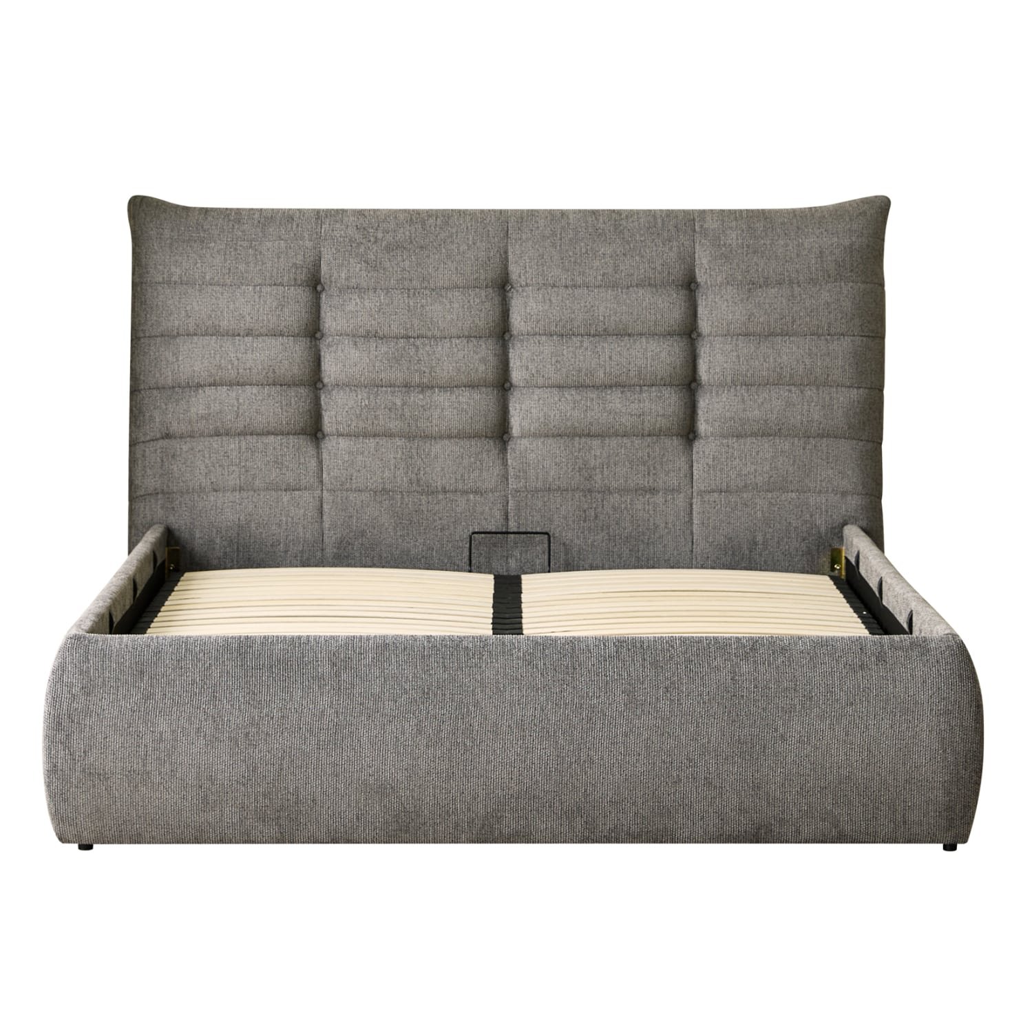 Το στρώμα στηρίζεται σε 20 σειρές εργονομικές τάβλες στήριξης, οι οποίες τοποθετούνται σε ένα μεταλλικό πλαίσιο που ανασηκώνεται με μηχανισμό ασφαλείας, προσφέροντας έναν μεγάλο αποθηκευτικό χώρο επενδυμένο επίσης με ύφασμα. Μια μοντέρνα πρόταση που θα ανανεώσει το υπνοδωμάτιό σας.