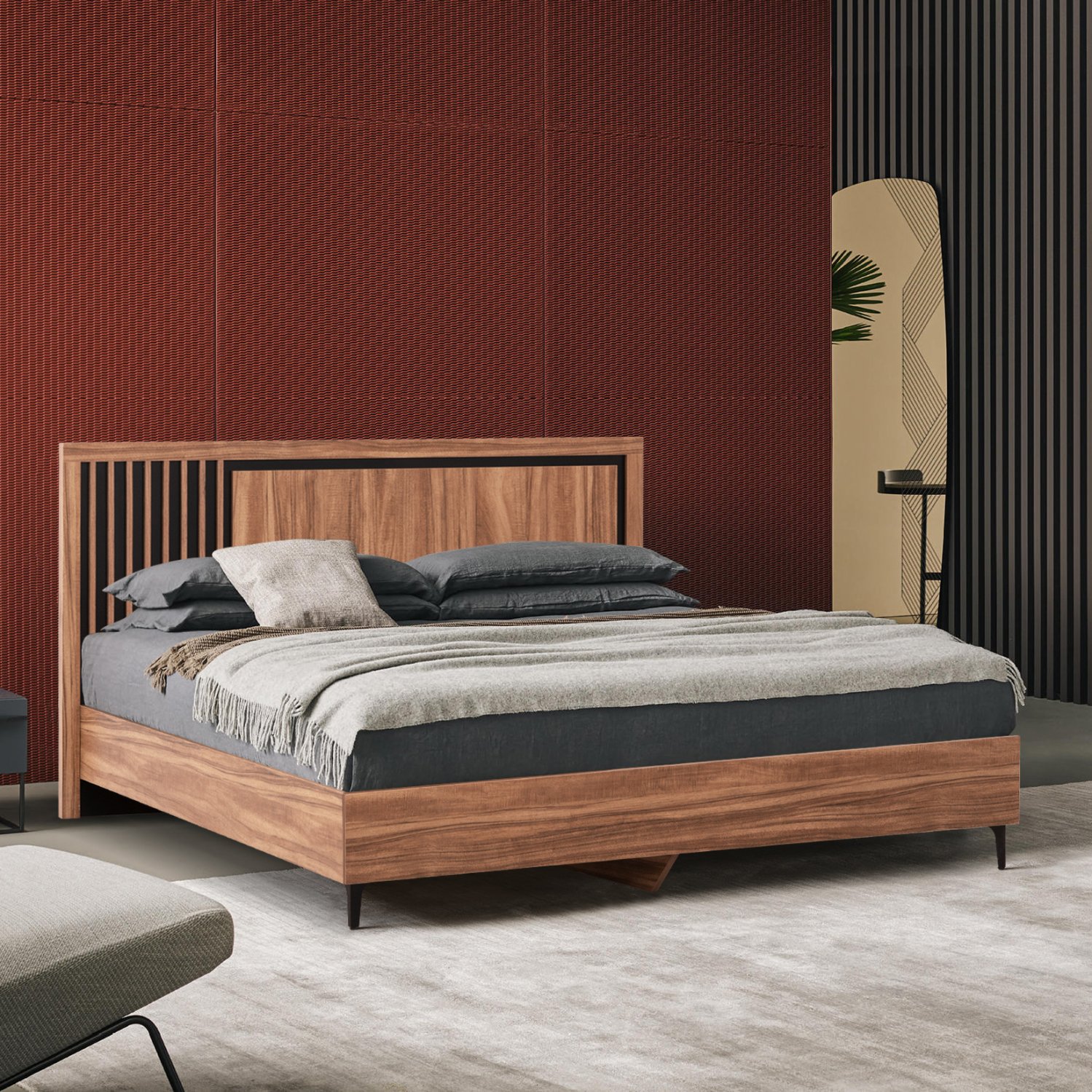 Το κρεβάτι είναι εξολοκλήρου κατασκευασμένο από μελαμίνη. Η μελαμίνη είναι είδος ξύλου σε μορφή μοριοσανίδας. Οι μοριοσανίδες είναι προϊόντα που έχουν τη μορφή πλάκας (panel) Ως υλικό είναι πολύ ανθεκτικό και με μεγάλη σκληρότητα. Άρα, πρόκειται για ένα συνθετικό υλικό με πολύ σκληρή επιφάνεια, με αποτέλεσμα να είναι πολύ ανθεκτική στις γρατζουνιές, στην τριβή και τους λεκέδες.