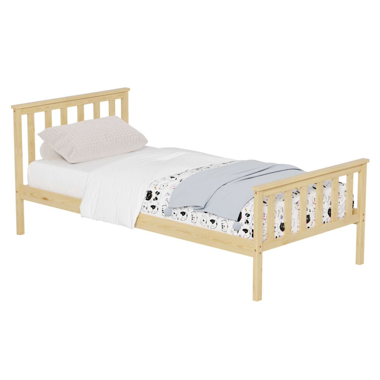 Το κρεβάτι είναι εξολοκλήρου κατασκευασμένο από μασίφ ξύλο πεύκου. Το πεύκο είναι ένα μαλακό, λευκό ή ανοιχτό κίτρινο ξύλο το οποίο είναι ελαφρύ σε βάρος με ευθύγραμμα νερά ξύλου και αντέχει στη συρρίκνωση, την διόγκωση και την κάμψη.