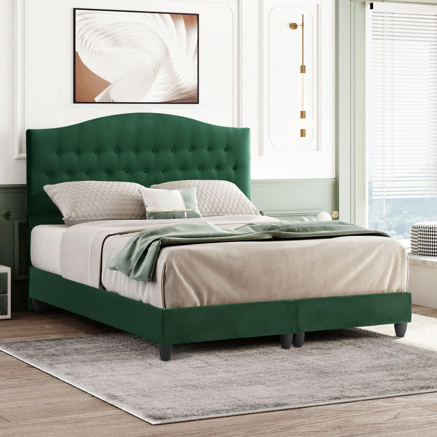 Το κρεβάτι MALENA έχει ψηλό κεφαλάρι, επενδυμένο με καπιτονέ τεχνοτροπία με τρούκς, ενώ και όλη η επένδυση του κρεβατιού είναι από βελούδινο ύφασμα. Το ΚΥΠΑΡΙΣΣΙ χρώμα σε όλο το κρεβάτι είναι εντυπωσιακό και μπορεί να συνδυαστεί με πληθώρα διακοσμητικών μοτίβων.