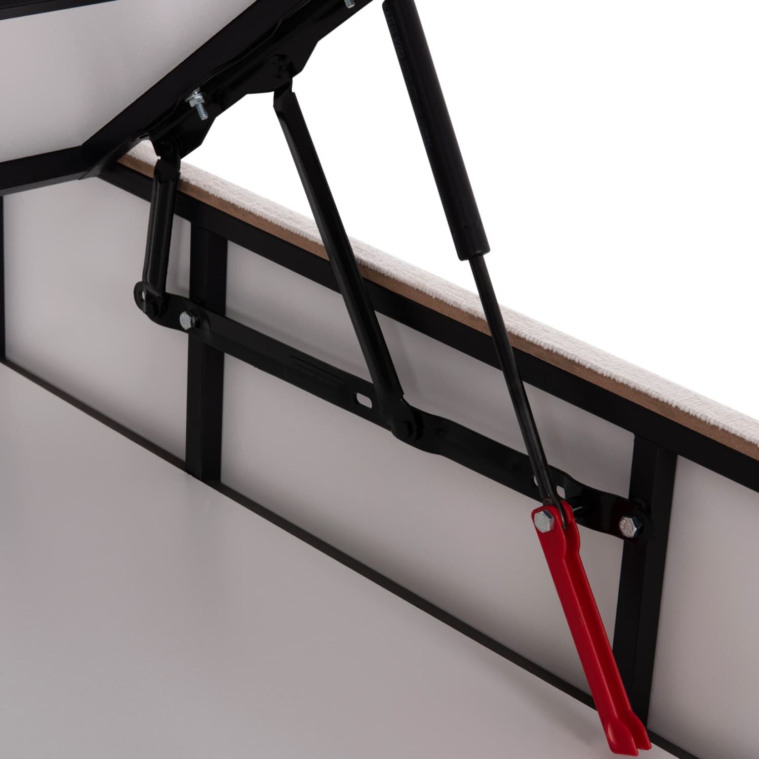 Ο σκελετός του κρεβατιού είναι ξύλινος, πράγμα που καθιστά το κρεβάτι εξαιρετικά στιβαρό και ανθεκτικό, χάρη και στην ενισχυμένη κατασκευή του. Ο μηχανισμός αποθήκευσης είναι μεταλλικός για αντοχή στο βάρος και στον χρόνο.