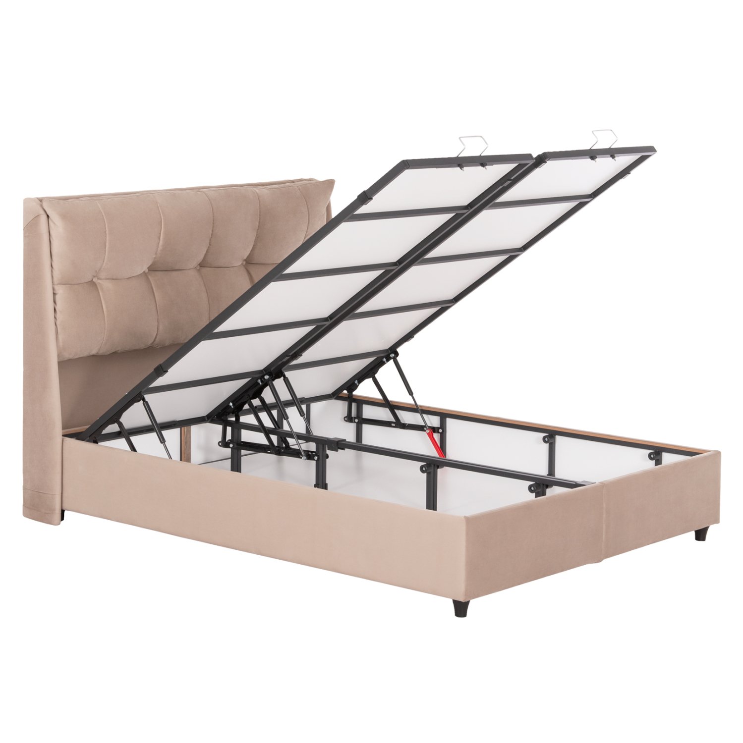 Ο σκελετός του κρεβατιού είναι ξύλινος, πράγμα που καθιστά το κρεβάτι εξαιρετικά στιβαρό και ανθεκτικό, χάρη και στην ενισχυμένη κατασκευή του. Ο μηχανισμός αποθήκευσης είναι μεταλλικός για αντοχή στο βάρος και στον χρόνο.