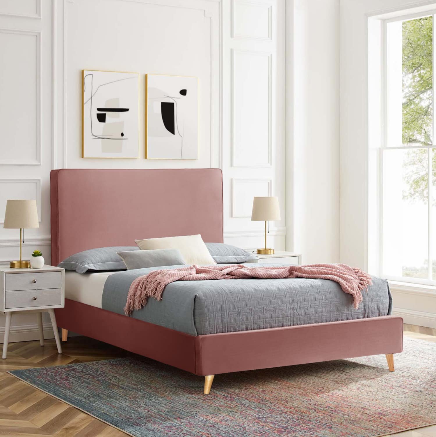 Το ημίδιπλο κρεβάτι MAYLIN είναι επενδυμένο με βελούδο σε χρώμα ΣΑΠΙΟ ΜΗΛΟ. Το στρώμα (διατίθεται σε ROLL-PACKING*) που συνοδεύει το κρεβάτι τοποθετείται σε δύο σειρές ανατομικές τάβλες, είναι διπλής όψης και είναι ΑΦΡΟΥ χωρίς ελατήρια. Τα πόδια είναι ξύλινα σε φυσικό χρώμα.