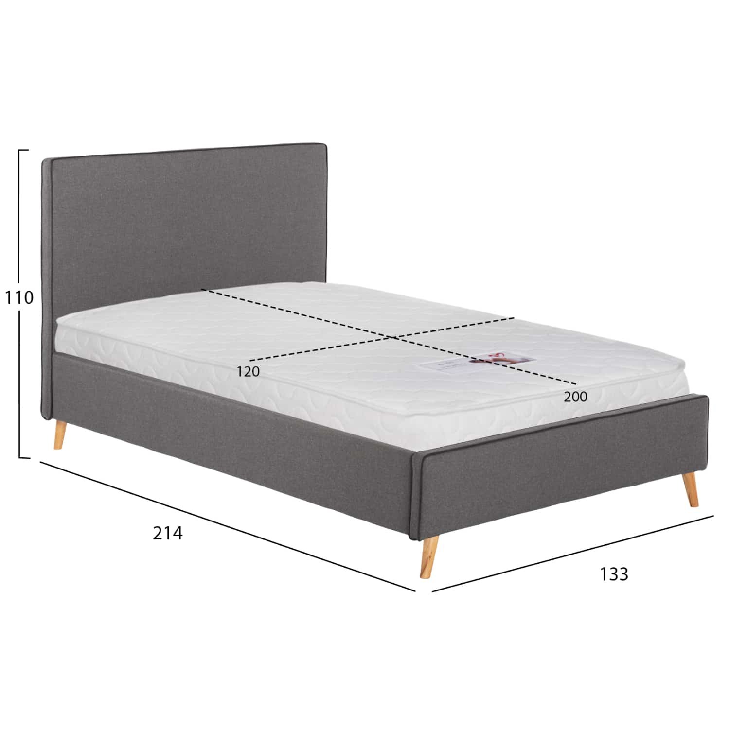 ΚΡΕΒΑΤΙ ΜΕ ΣΤΡΩΜΑ MAYLIN HM21281.03 ΓΚΡΙ ΥΦΑΣΜΑ–ΓΙΑ 120×200εκ