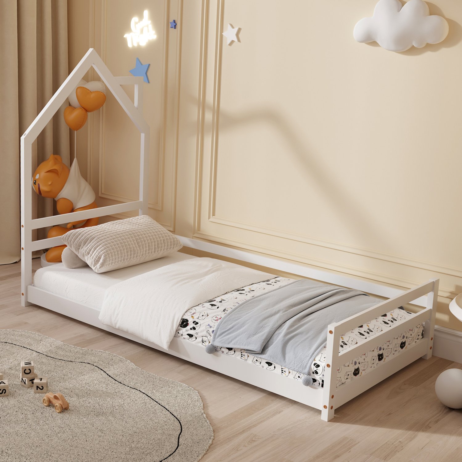 Σας παρουσιάζουμε το καινούργιο παιδικό κρεβάτι HOUSER. Είναι σε διάσταση για μονό στρώμα 90×190 εκ, και αποτελεί μια άριστης ποιότητας, κλασική και ασφαλή επιλογή για το παιδικό δωμάτιο μιας και είναι τύπου Montessori, που σημαίνει ότι έχει σχεδιαστεί σύμφωνα με το εκπαιδευτικό σύστημα Montessori, σύμφωνα με το οποίο τα παιδιά μαθαίνουν καλύτερα, όταν επιλέγουν μόνα τους τι θα κάνουν. Το χαμηλό ύψος κρεβατιού χωρίς πόδια, βοηθά να εξερευνούν την αυτονομία τους και να ανεβοκατεβαίνουν από το κρεβάτι τους ελεύθερα ανά πάσα στιγμή. Είναι ξύλινο σε ΛΕΥΚΟ χρώμα βαμμένο με αβλαβές βερνίκι με βάση το νερό και μη τοξικό, ιδανικό για παιδιά. Το στρώμα τοποθετείται σε τάβλες κατασκευασμένες από ξυλεία κόντρα πλακέ. Το κεφαλάρι έχει σχήμα σπιτιού με καμινάδα που θα δώσει μια ευχάριστη, «ζεστή», και παιχνιδιάρικη όψη σε κάθε παιδικό δωμάτιο.