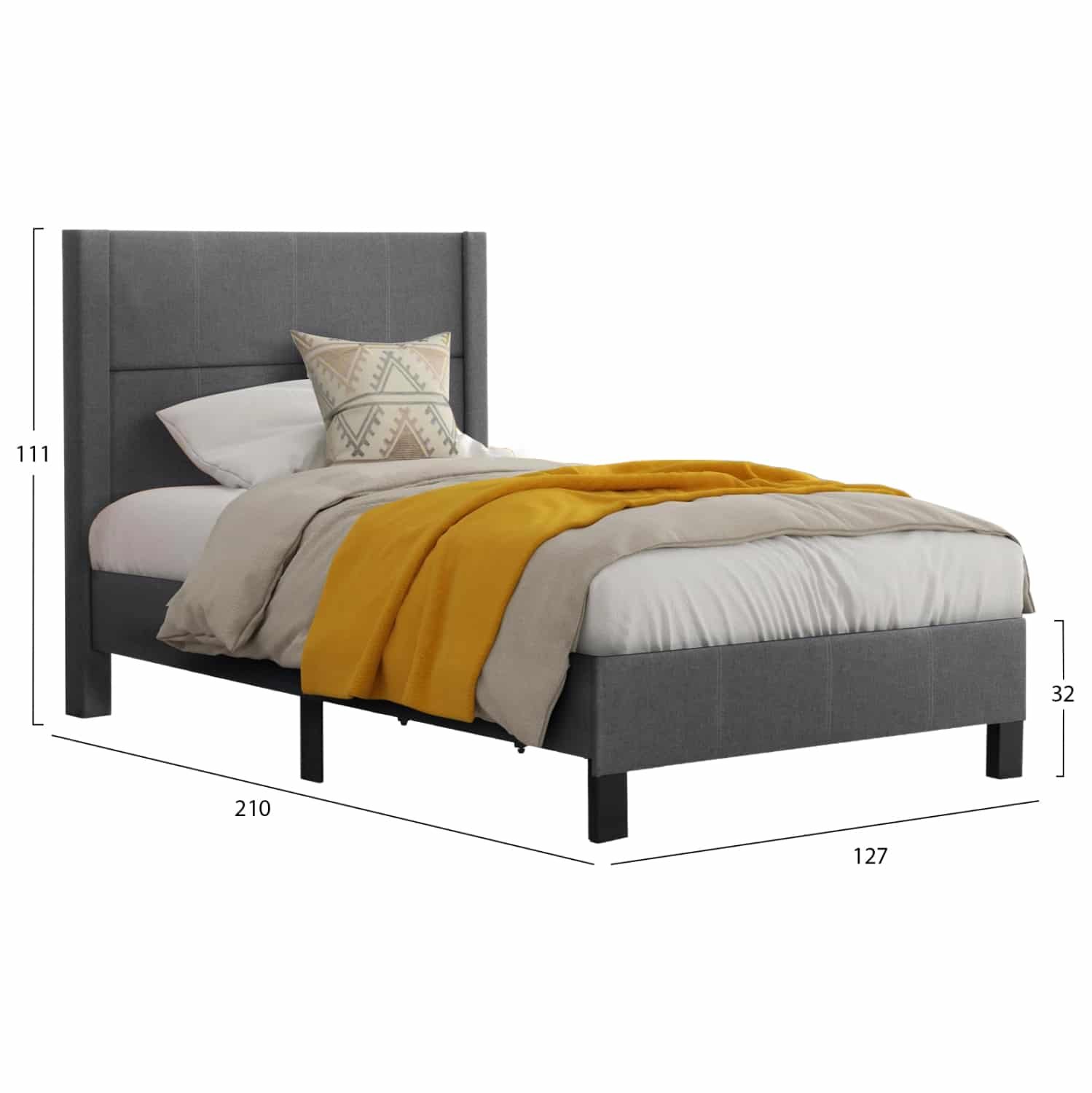 Το μονό κρεβάτι TRILLOP διαθέτει ψηλό κεφαλάρι, επενδυμένο με ανάγλυφο ύφασμα σε ΓΚΡΙ χρώμα με καπιτονέ τεχνοτροπία σε μεγάλα τετράγωνα, όπως και όλο το κρεβάτι. Η στήριξη του στρώματος γίνεται με κλασικές τάβλες οι οποίες εμπεριέχονται στην συσκευασία και στην τιμή. Ιδανικό κρεβάτι τόσο για το σπίτι, όσο και για επαγγελματικούς χώρους, όπως ξενοδοχεία και Airbnb. Άλλωστε, ακόμα κι η συναρμολόγησή του είναι πανεύκολη, αφού όλα τα απαραίτητα περιέχονται στην συσκευασία. Απλά και όμορφα φτιάχνετε το υπνοδωμάτιο των ονείρων σας!