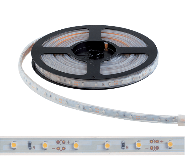 Εύκαμπτη LED ταινία ELMARK με 60 LED/m τύπου SMD3528, κατάλληλη για θερμό και απαλό φωτισμό σε χώρους με απαιτήσεις για στεγανότητα (IP65). Ιδανική επιλογή για διακριτικό φωτισμό σε προστατευμένα εξωτερικά ή εσωτερικά σημεία.