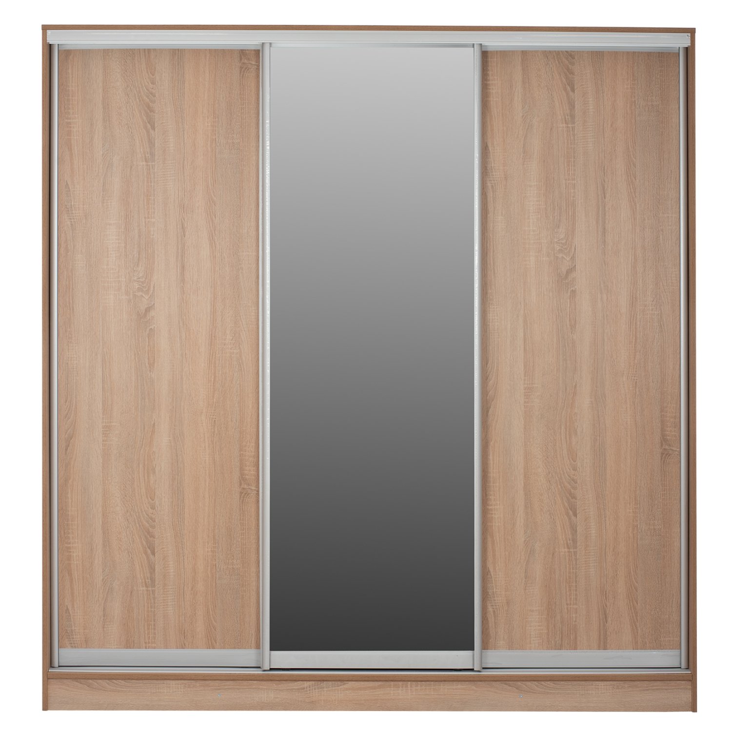 Συρόμενη ντουλάπα, σε sonama απόχρωση, με τρεις πόρτες η μια εκ των οποίων είναι καθρέπτης.