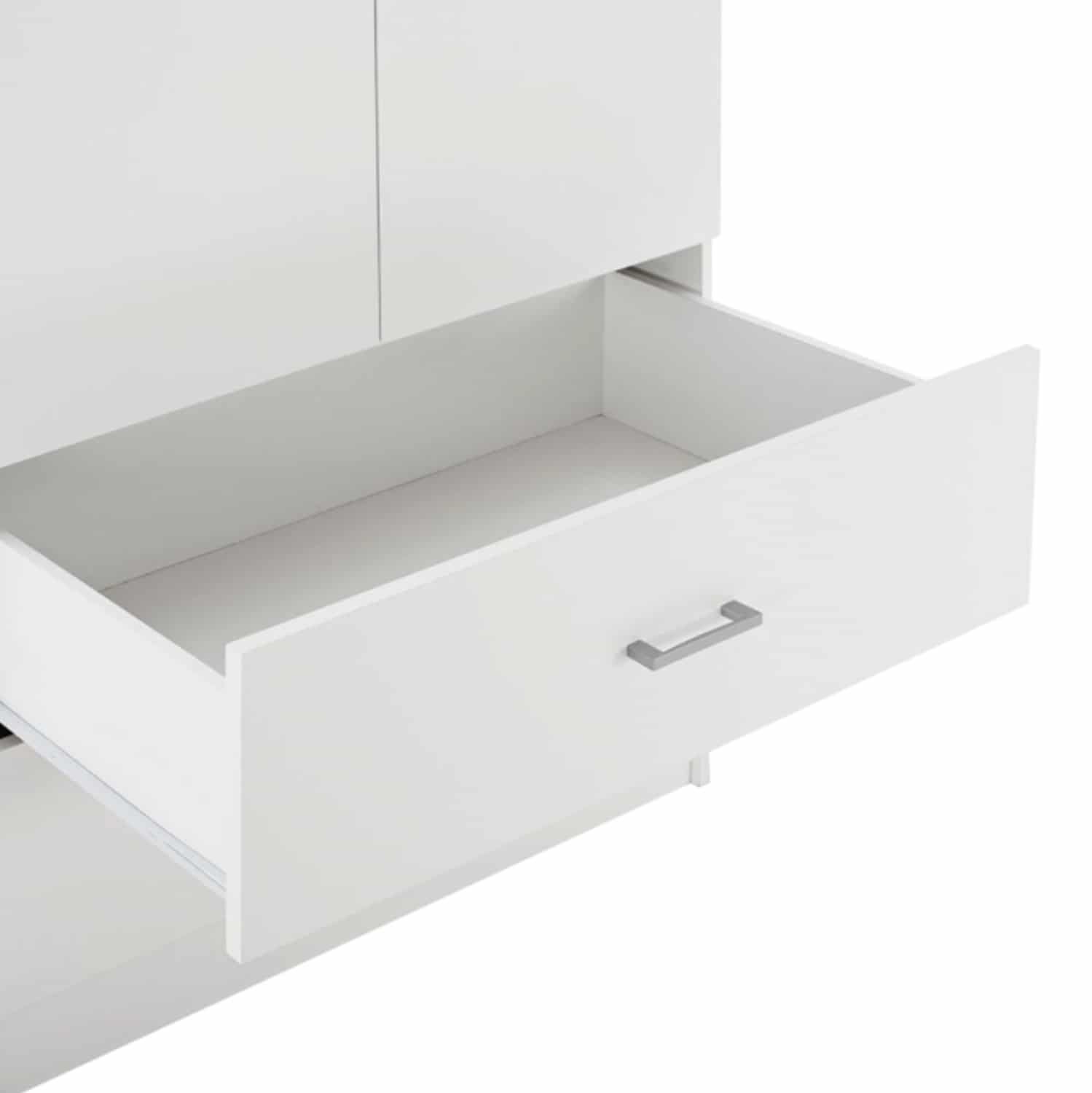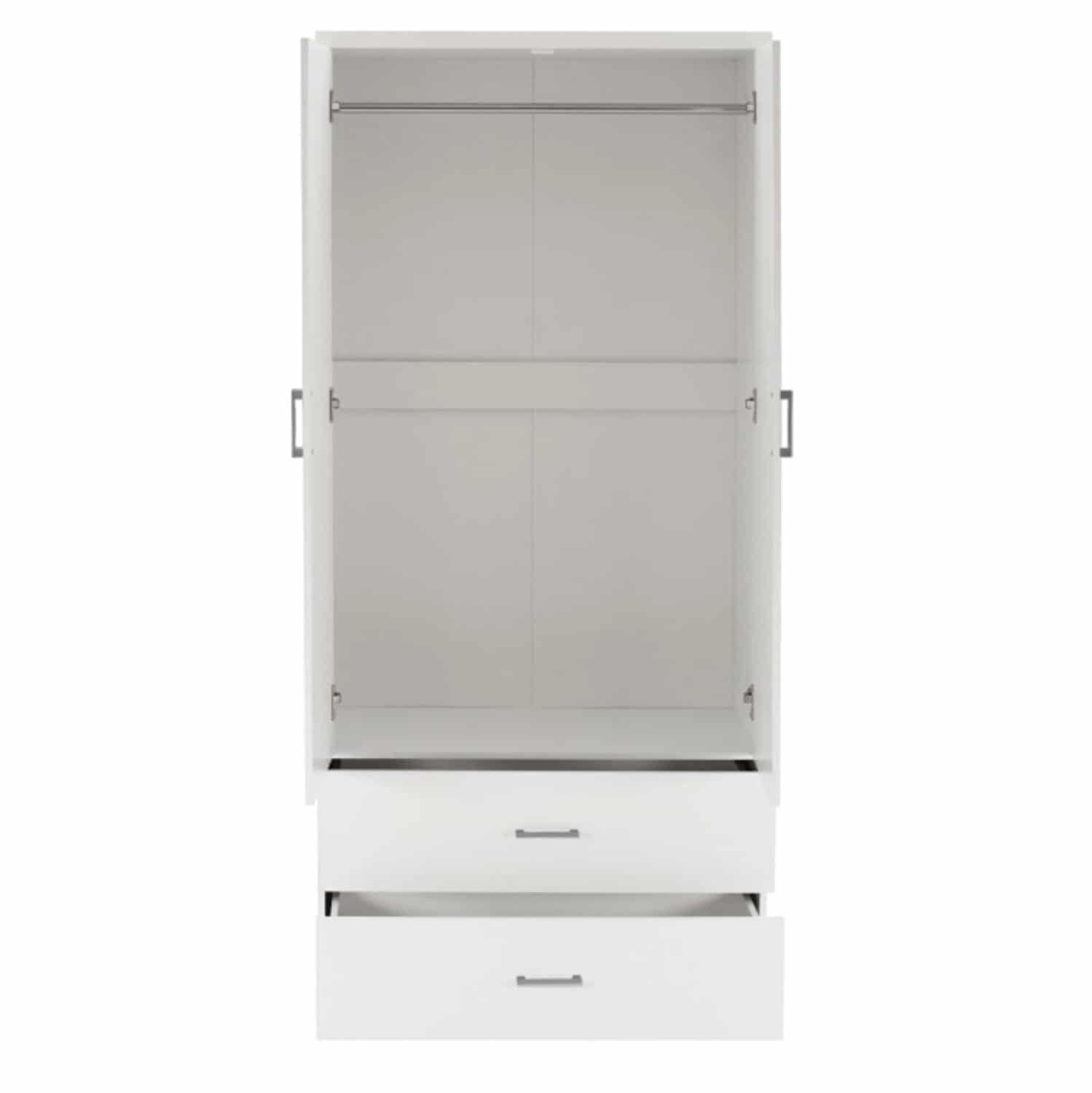Γνωρίστε την 4-φυλλη ντουλάπα-γκαρνταρόμπα REINA. Πρόκειται για μια μεγάλη ντουλάπα με 4 πόρτες, και στο εσωτερικό της υπάρχει μόνο μια INOX μπάρα για κρέμαση ρούχων. Κάτω ακριβώς από τον χώρο της γκαρνταρόμπας υπάρχουν και 4 ευρύχωρα συρτάρια. Οι πόρτες αλλά και τα συρτάρια ανοίγουν με καλαίσθητα ασημί χερούλια. Είναι κατασκευασμένη από μελαμίνη σε ΛΕΥΚΟ χρώμα και αισθητικά μπορεί να ταιριάξει με πολλά άλλα στυλ, χάρη και στις «καθαρές» γραμμές της.