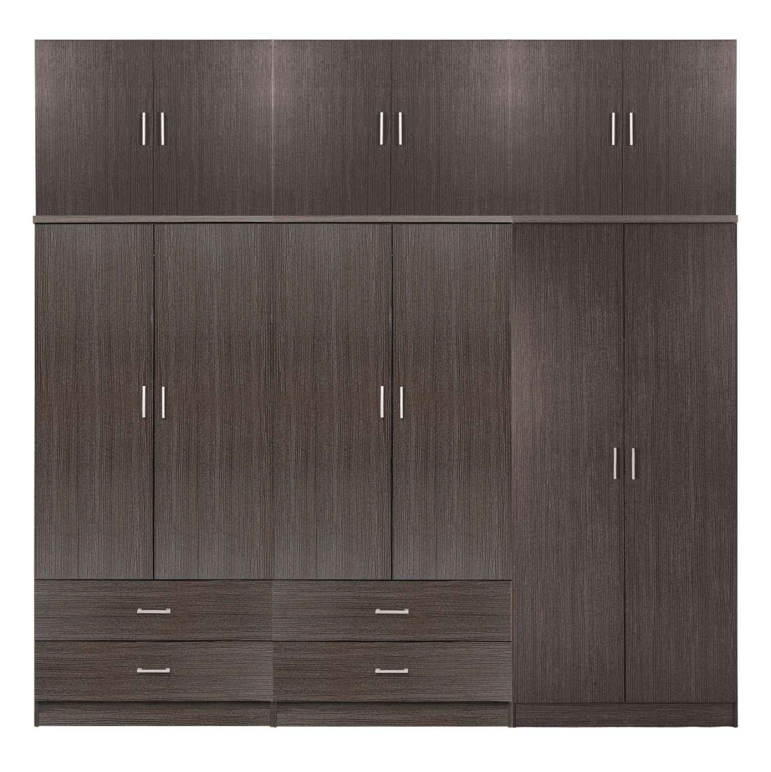 Η μεγάλη ντουλάπα-γκαρνταρόμπα REINA με πατάρια διαθέτει 6 πόρτες (6-φυλλη) και είναι χωρισμένη σε δύο μέρη. Η μία πλευρά διαθέτει μπάρες για κρέμαση ρούχων και 4 συρτάρια στο κάτω μέρος. Η άλλη πλευρά διαθέτει επίσης μπάρα για κρέμαση ρούχων και ένα ράφι πάνω από την μπάρα. Τα πατάρια διαθέτουν ενιαίους αποθηκευτικούς χώρους χωρίς ράφια. Οι πόρτες αλλά και τα συρτάρια ανοίγουν με καλαίσθητα ασημί χερούλια. Είναι κατασκευασμένη από μελαμίνη σε ZEBRANO χρώμα και αισθητικά μπορεί να ταιριάξει με πολλά άλλα στυλ, χάρη και στις «καθαρές» γραμμές της.