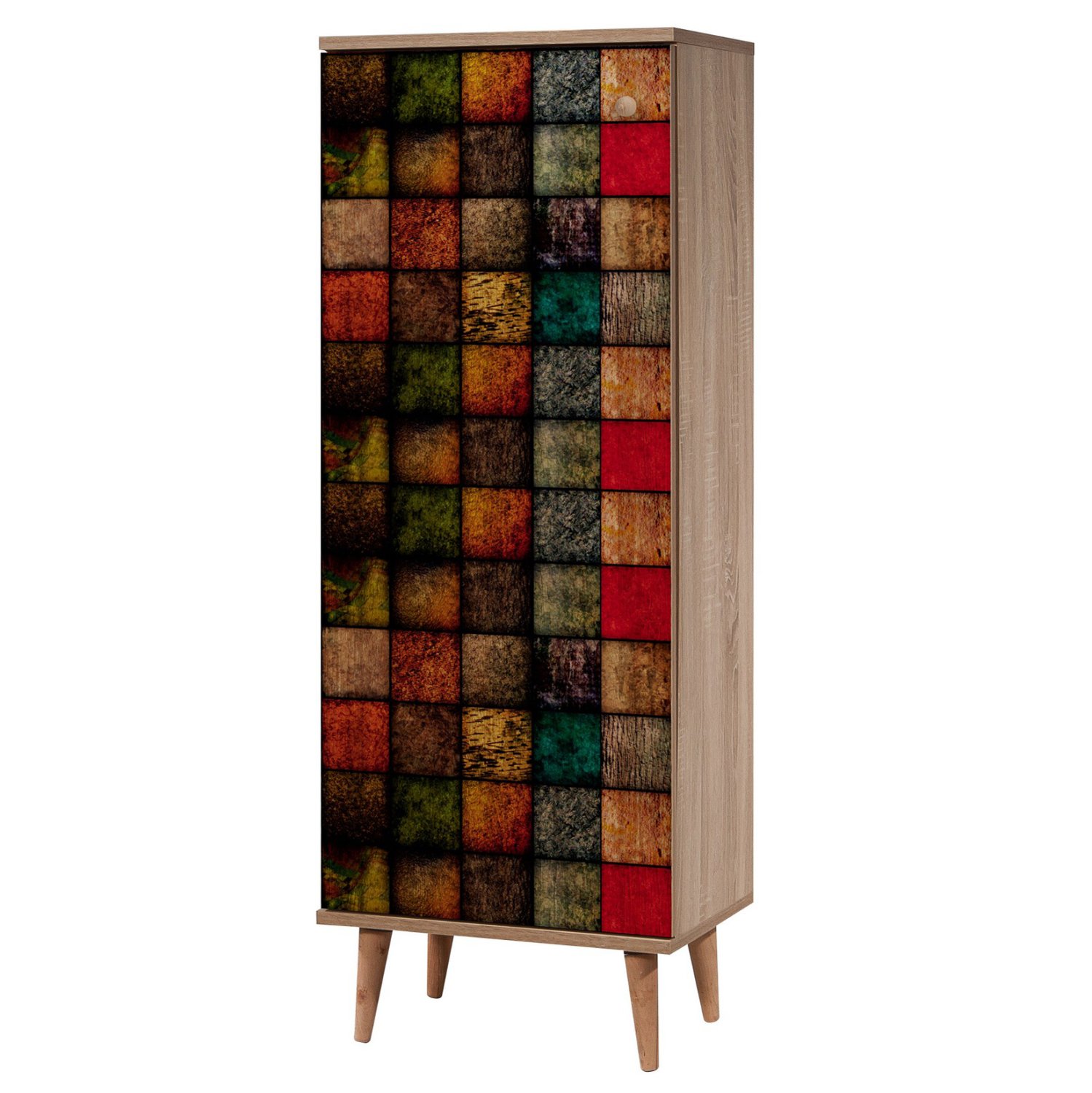 Παπουτσοθήκη-ντουλάπι σε sonama απόχρωση και πολύχρωμο σχέδιο.