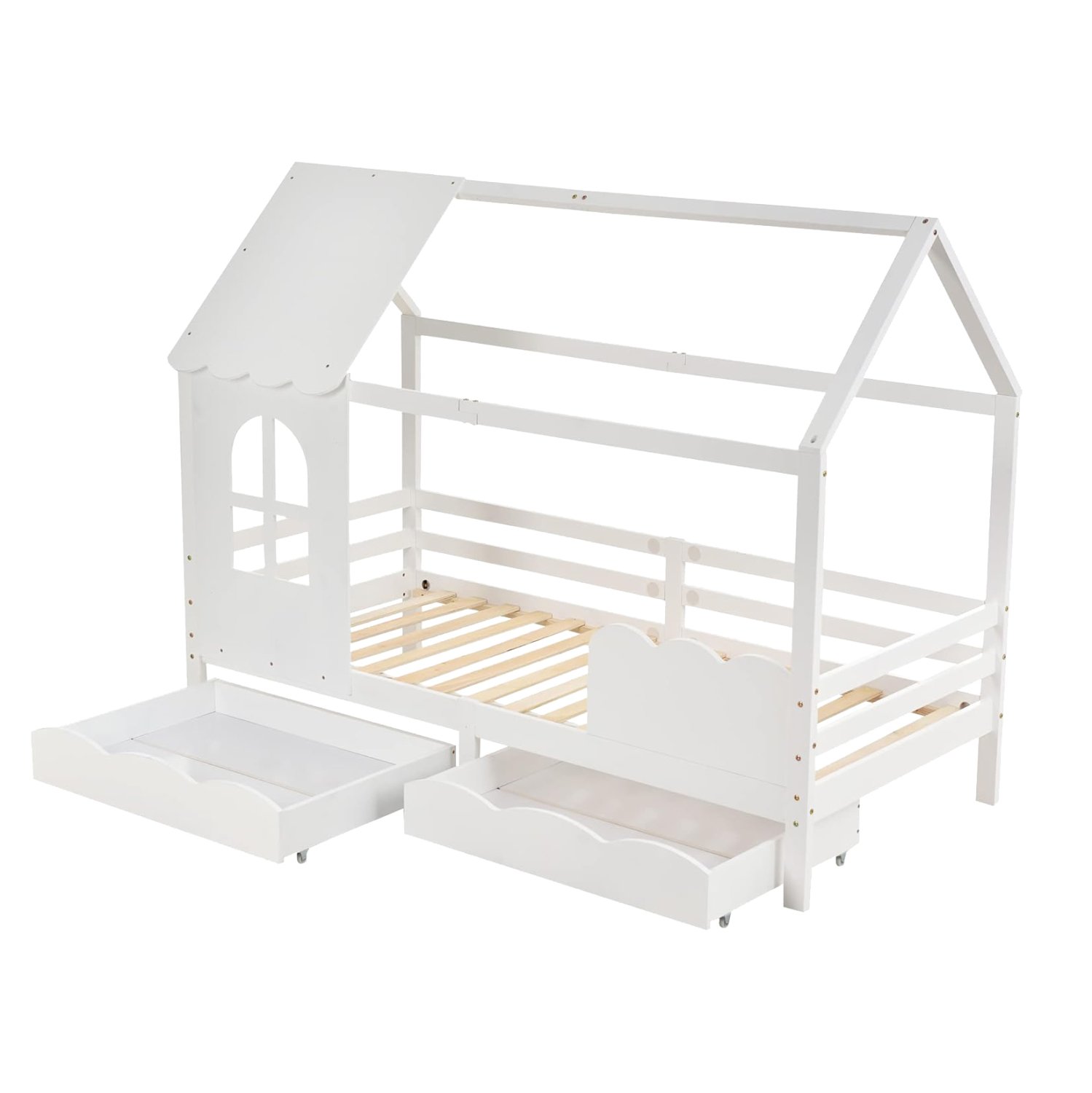 Το DOMER είναι ακόμα ένα καινούργιο παιδικό κρεβάτι τύπου Montessori που σημαίνει ότι έχει σχεδιαστεί σύμφωνα με το εκπαιδευτικό σύστημα Montessori, κατά το οποίο τα παιδιά μαθαίνουν καλύτερα, όταν επιλέγουν μόνα τους τι θα κάνουν. Το χαμηλό ύψος κρεβατιού χωρίς πόδια, βοηθά να εξερευνούν την αυτονομία τους και να ανεβοκατεβαίνουν από το κρεβάτι τους ελεύθερα ανά πάσα στιγμή. Είναι σε διάσταση για μονό στρώμα 90×190 εκ, και αποτελεί μια άριστης ποιότητας, μοντέρνα και ασφαλή επιλογή για το παιδικό δωμάτιο. Είναι ξύλινο σε ΛΕΥΚΟ χρώμα βαμμένο με αβλαβές μη τοξικό βερνίκι με βάση το νερό, ιδανικό για παιδιά. Το στρώμα τοποθετείται σε τάβλες κατασκευασμένες από ξυλεία κόντρα πλακέ. Ολόκληρο το κρεβάτι έχει σχήμα σπιτιού με παραθυράκι, που θα δώσει μια ευχάριστη, «ζεστή», και παιχνιδιάρικη όψη σε κάθε παιδικό δωμάτιο. Πέρα, όμως, από ευχάριστο στην όψη, αυτό το κρεβάτι είναι και πρακτικό αφού διαθέτει 2 μεγάλα συρτάρια στην κάτω πλευρά, για να αποθηκεύετε οτιδήποτε χρειαστεί.