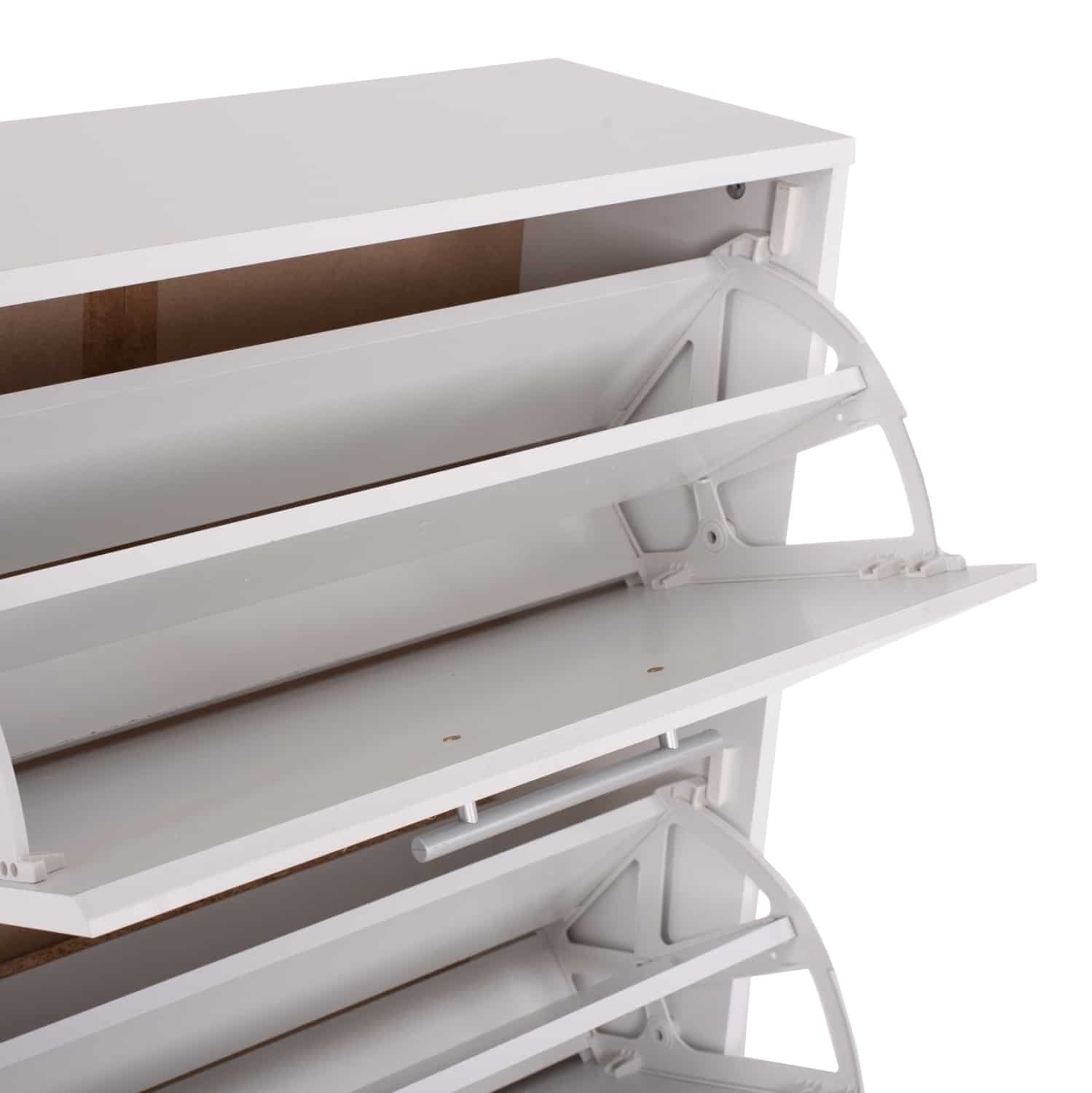 Σας αρέσει να είστε τακτοποιημένοι και καθαροί; Σας παρουσιάζουμε την παπουτσοθήκη μελαμίνης DAVINA σε ΛΕΥΚΟ χρώμα με γκρι πόδια, με 3 επίπεδα που ανοίγουν με όμορφα γκρι χερούλια. Το κάθε επίπεδο έχει ένα ράφι που δημιουργεί δύο χώρους για κάθετη τοποθέτηση των παπουτσιών. Σκοπός μας είναι να σας βοηθήσουμε να οργανώσετε και να βελτιώσετε με τον καλύτερο δυνατό τρόπο την λειτουργικότητα του σπιτιού σας.