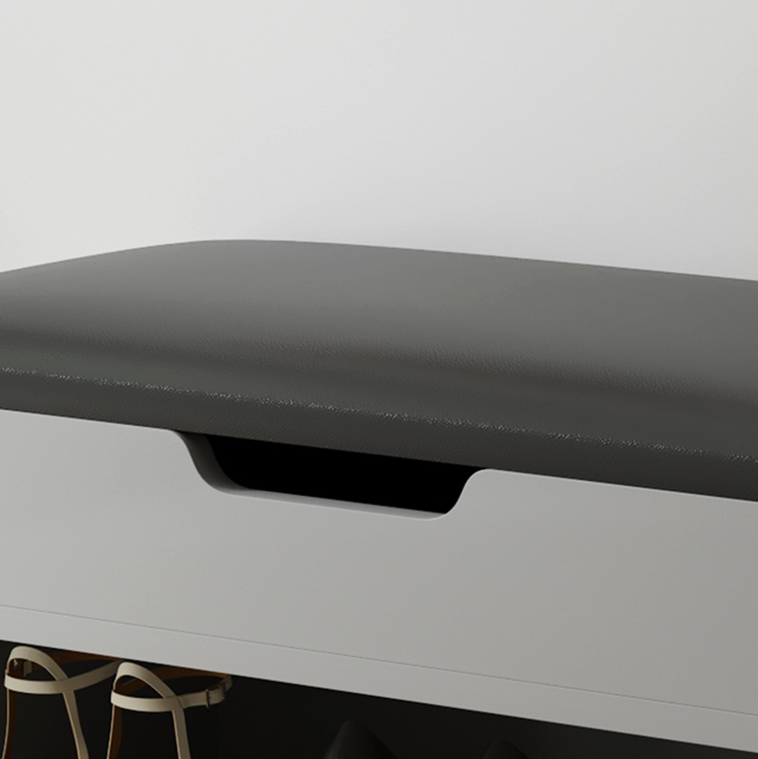 Σας αρέσει να είστε τακτοποιημένοι και καθαροί; Σας παρουσιάζουμε την παπουτσοθήκη μελαμίνης ROMIR σε ΓΚΡΙ χρώμα με πολύ χαμηλά μεταλλικά πόδια. Ένα έπιπλο που εκτός από χώρο αποθήκευσης παπουτσιών, διαθέτει και κάθισμα επενδυμένο με PU leather σε ΑΝΘΡΑΚΙ χρώμα, για να φοράτε τα παπούτσια σας καθιστοί. Ο χώρος αποθήκευσης είναι ανοιχτός με 2 επίπεδα, ενώ κάτω από το κάθισμα που ανασηκώνεται υπάρχει ακόμα ένας, πιο ρηχός, χώρος αποθήκευσης αντικειμένων. Σκοπός μας είναι να σας βοηθήσουμε να οργανώσετε και να βελτιώσετε με τον καλύτερο δυνατό τρόπο την λειτουργικότητα του σπιτιού σας.