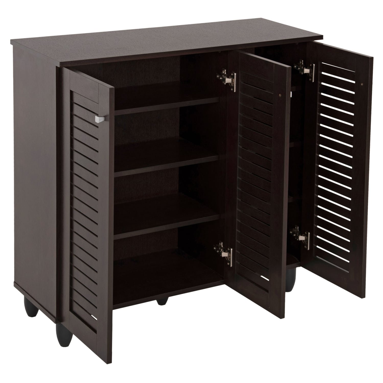Σας παρουσιάζουμε την παπουτσοθήκη-ντουλάπι μελαμίνης PROLLY σε WENGE χρώμα. Πρόκειται για ένα ψηλό σχετικά ντουλάπι με 2 ξεχωριστούς χώρους με 3 ράφια που δημιουργούν 4 χώρους αποθήκευσης, και κλείνει με 3 πόρτες με μεταλλικά κυβάκια χερούλια. Μια διπλή πόρτα για τον μεγαλύτερο χώρο, και μια μονή πόρτα για τον μικρότερο χώρο. Σκοπός μας είναι να σας βοηθήσουμε να οργανώσετε και να βελτιώσετε με τον καλύτερο δυνατό τρόπο οτιδήποτε θελήσετε.