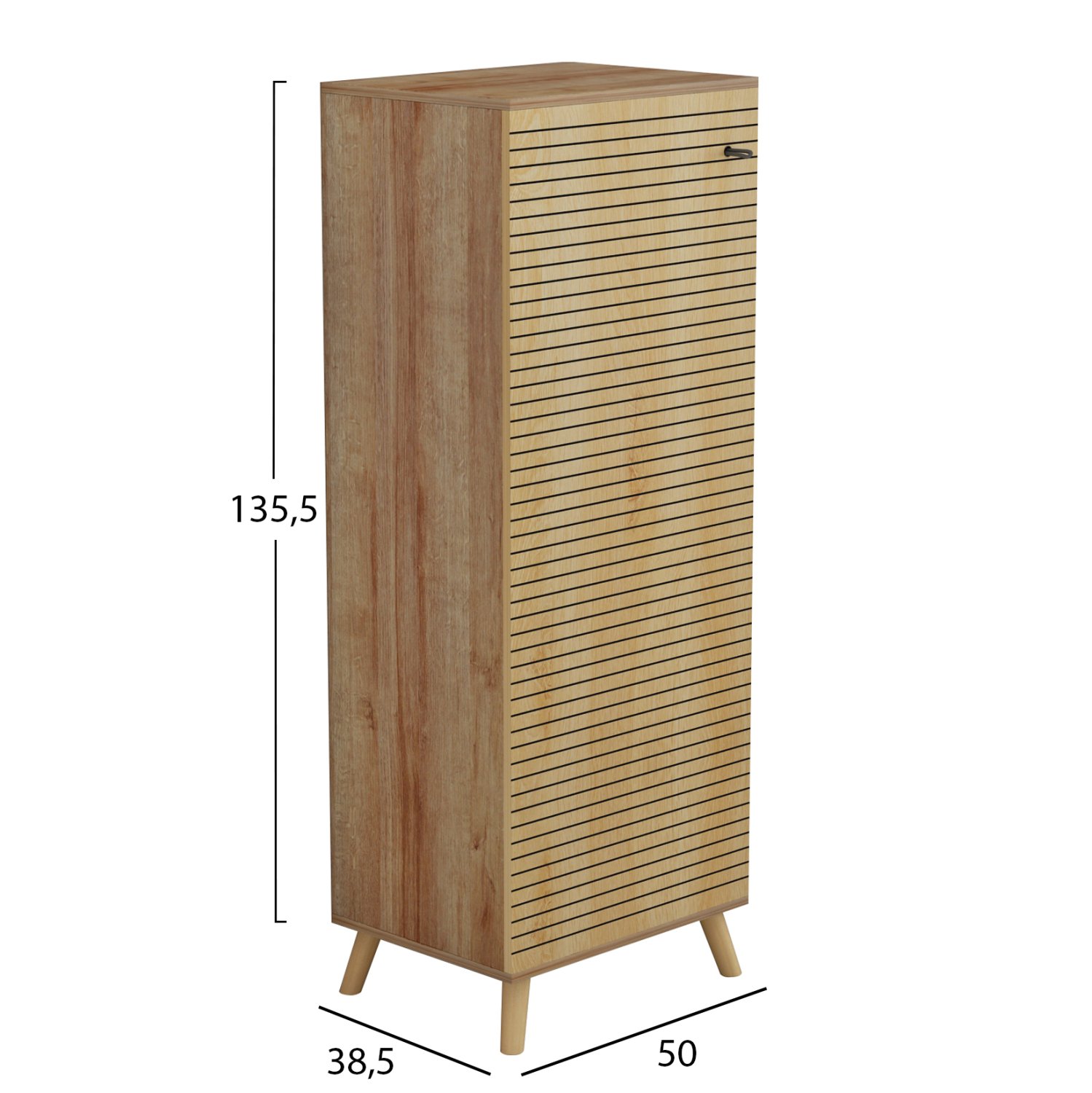 Σας παρουσιάζουμε την παπουτσοθήκη-ντουλάπι μελαμίνης ALVARO σε ΦΥΣΙΚΟ χρώμα ξύλου. Πρόκειται για ένα ψηλό σχετικά ντουλάπι με 1 πόρτα σε χρώμα, επίσης, ΦΥΣΙΚΟΥ ξύλου με ανθρακί ρίγες. Τα πόδια είναι ξύλινα και ψηλά ενώ στο εσωτερικό έχει 7 ράφια (άρα, 8 επίπεδα τοποθέτησης). Σκοπός μας είναι να σας βοηθήσουμε να οργανώσετε και να βελτιώσετε με τον καλύτερο δυνατό τρόπο οτιδήποτε θελήσετε.