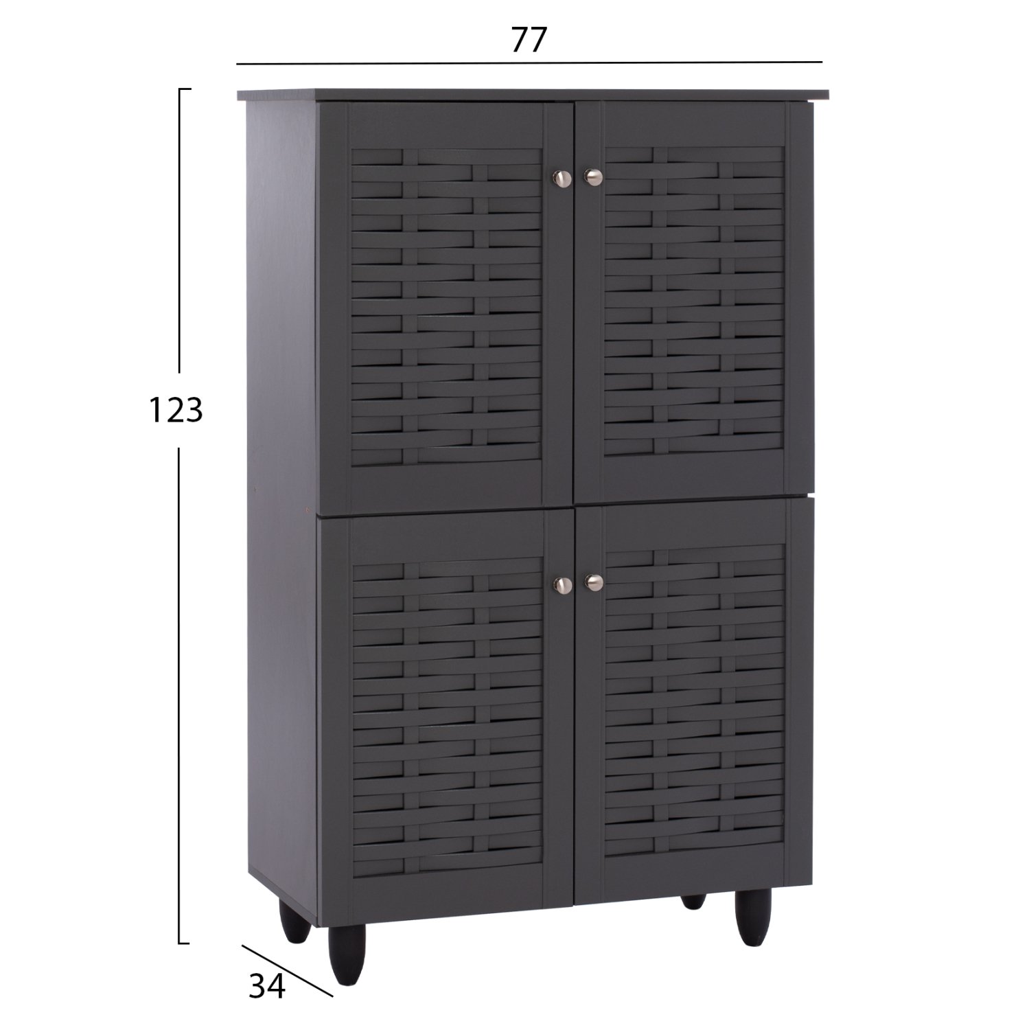 Σας αρέσει να είστε τακτοποιημένοι και καθαροί;…καλό είναι αυτό, το ίδιο κι εμείς. Σας παρουσιάζουμε την παπουτσοθήκη-ντουλάπι «KABIRA” σε σκούρο γκρι χρώμα με δύο επίπεδα και 4 πόρτες με μεταλλικά στρογγυλά χερούλια. Σκοπός μας είναι να σας βοηθήσουμε να οργανώσετε και να βελτιώσετε με τον καλύτερο δυνατό τρόπο την λειτουργικότητα του σπιτιού σας.