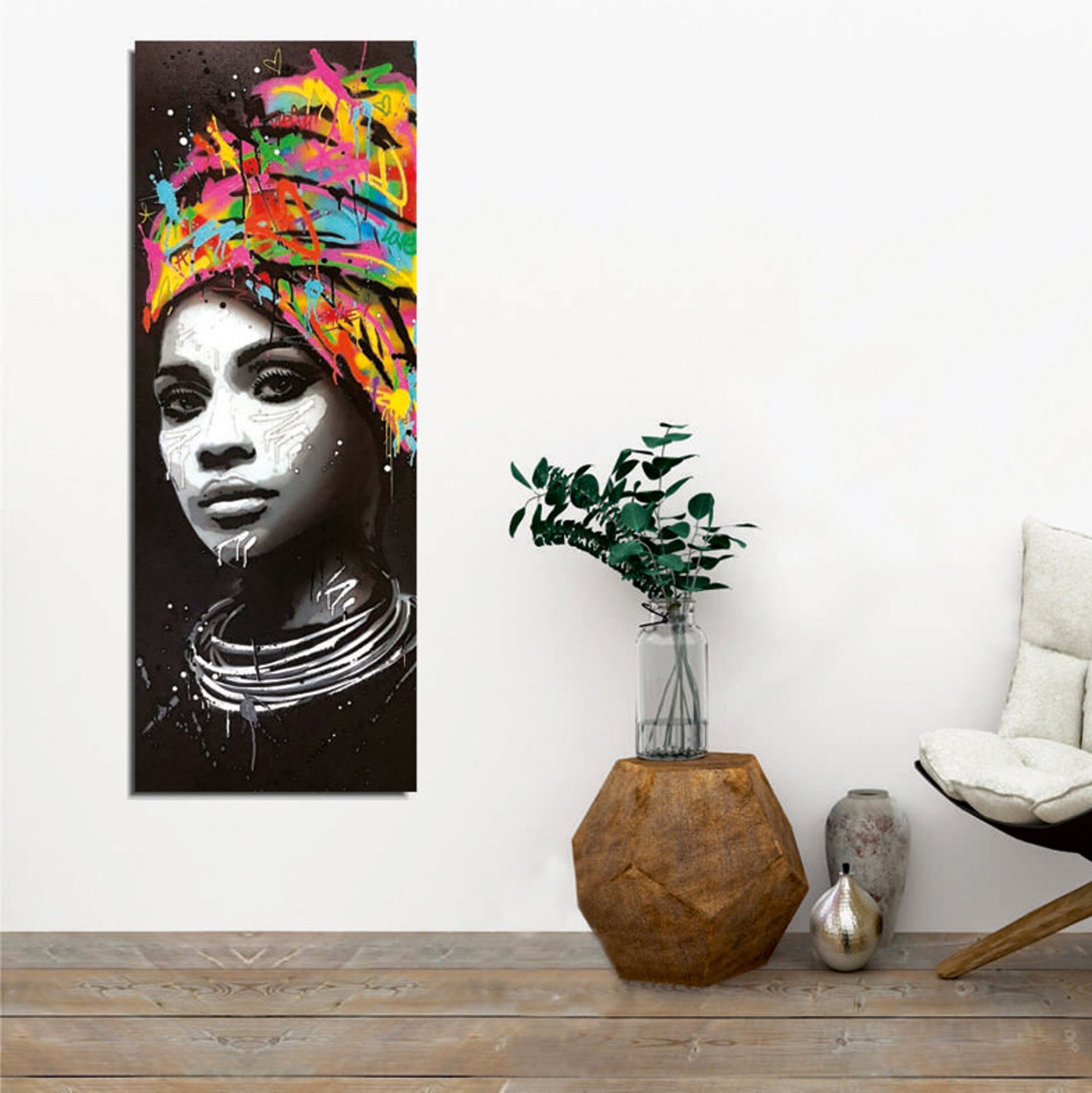 Διακοσμητικός πίνακας σε τυπωμένο καμβά σε σχέδιο κορίτσι με τουρμπάνι.