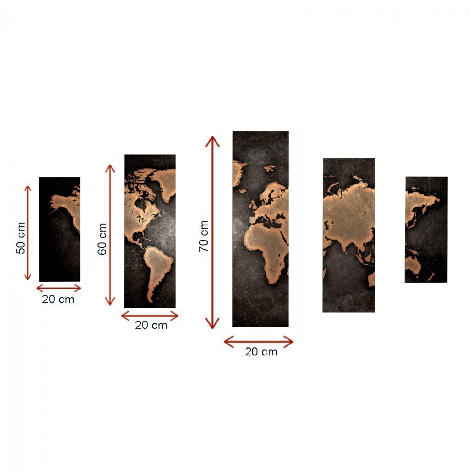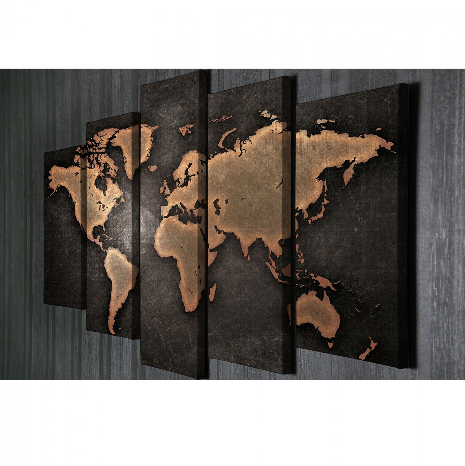 Διακοσμητικός πεντάπτυχος πίνακας σε καμβά σε σχέδιο world map.