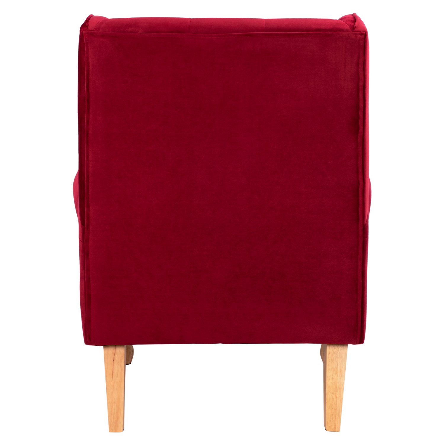 Σας παρουσιάζουμε την μπερζέρα BRANDON, σε έντονο ΚΟΚΚΙΝΟ χρώμα με ξύλινα πόδια. Τα πόδια είναι σε φυσικό χρώμα ξύλου, και ιδιαίτερα τα εμπρός πόδια έχουν όμορφο σκαλιστό φινίρισμα. Η επένδυση της πλάτης έχει γίνει με τεχνοτροπία καπιτονέ που προσδίδει ιδιαίτερη ομορφιά στην μπερζέρα σε συνδυασμό, φυσικά, με το υψηλής ποιότητας βελούδινο ύφασμα. Τα μπράτσα και το κάθισμα είναι ιδιαιτέρως αναπαυτικά ανταποκρινόμενα στον χαρακτήρα της πολυθρόνας.