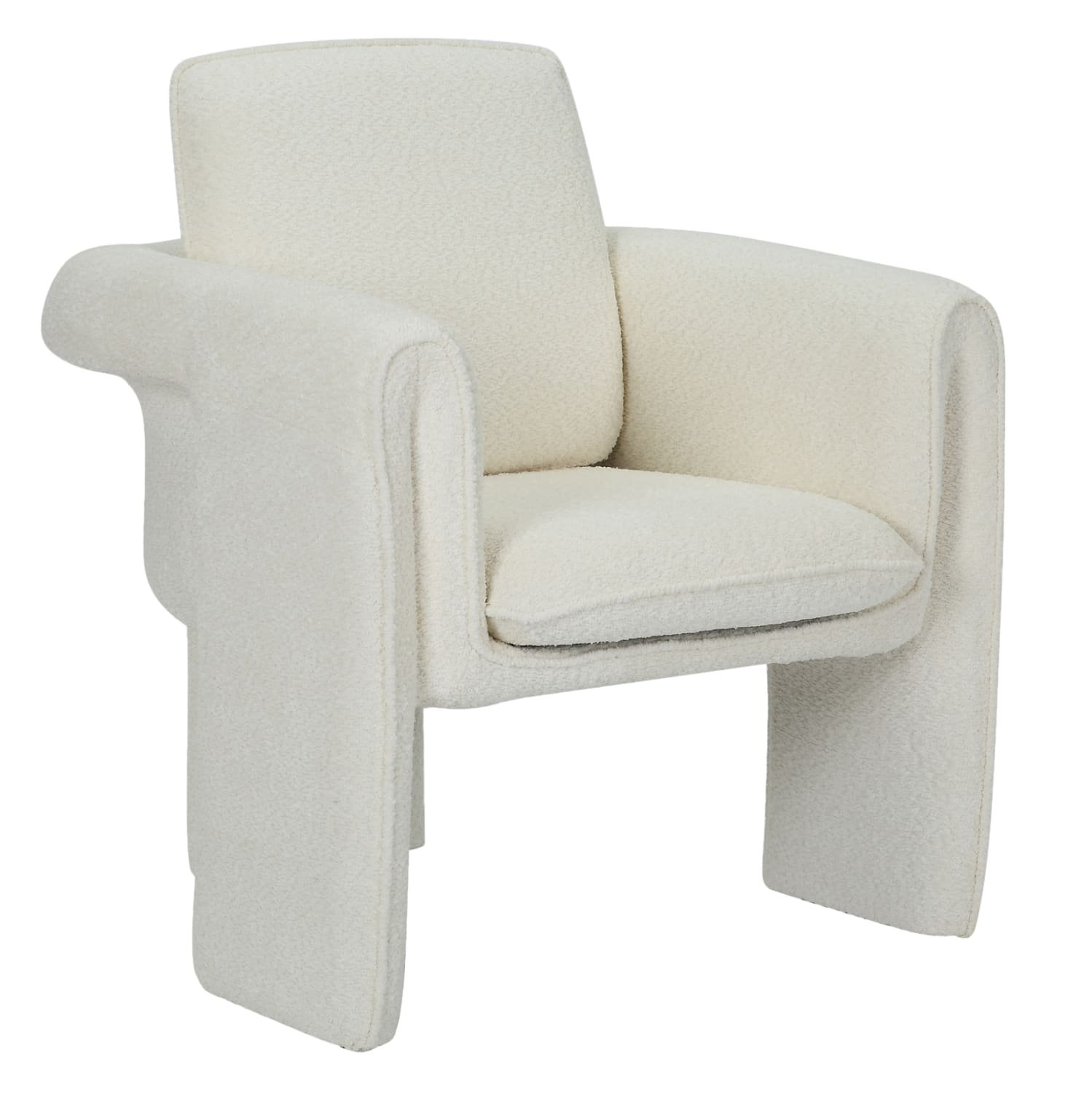 Ο σκελετός της πολυθρόνας είναι μεταλλικός με ηλεκτροστατική βαφή, ενώ ολόκληρη η επένδυση έχει γίνει με μπουκλέ ύφασμα εξαιρετικής ποιότητας και υφής. Μπουκλέ λέγεται οποιοδήποτε ύφασμα που έχει κόμπο-μπούκλα στην ύφανσή του. Κατασκευάζεται από σχεδόν όλες τις πρώτες ύλες (αν και συνήθως είναι συνθετικό) με ειδικές κλωστές με κόμπους ή πολύ στριμμένα νήματα, έτσι ώστε να έχει σγουρή επιφάνεια. Δεν τσαλακώνει και μπορεί να είναι μονόχρωμο, μελανζέ ,καρώ ή τουιντ.