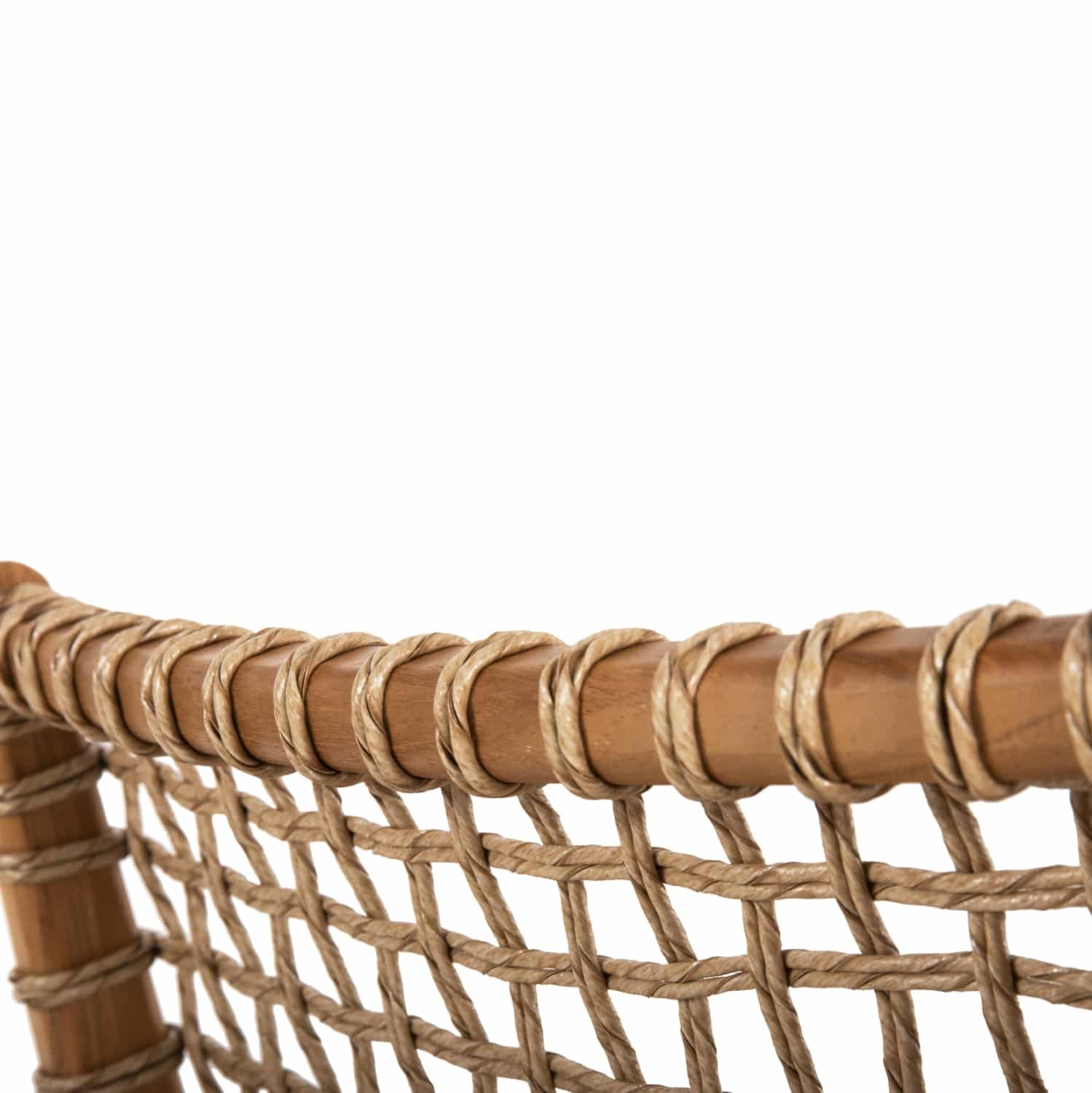 Η πολυθρόνα VAYA είναι όμορφη και πρακτική. Ο πανέμορφος σκελετός της είναι από ποιοτικό ξύλο, ενώ τόσο η μεσαίου ύψους πλάτη όσο και το φαρδύ κάθισμα αποτελούνται από αριστοτεχνικά πλεγμένο συνθετικό σχοινί άριστης ποιότητας. Οι σχεδιαστικές γραμμές της πολυθρόνας είναι κομψές και με γνώμονα την άνεση του χρήστη. Το ξύλο έχει φυσικό χρώμα που μπορεί άνετα να συνδυαστεί με διάφορα διακοσμητικά μοτίβα. Η πολυθρόνα θα αποτελέσει το κέντρο ενδιαφέροντος οπουδήποτε και αν τοποθετηθεί.