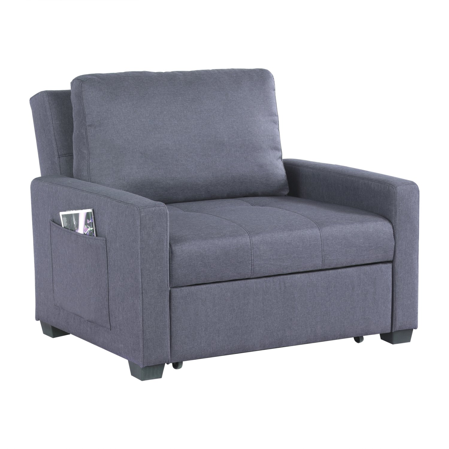 Η πολυθρόνα-κρεβάτι ΚΑΝΝΑ είναι η επιτομή της πρακτικότητας και του όμορφου στυλ. Πρόκειται για μια κοντή πολυθρόνα επενδυμένη με ΓΚΡΙ ποιοτικό ύφασμα και με φαρδύ κάθισμα. Τα μπράτσα είναι κοντά με πρακτικές θήκες για μικροπράγματα στην εξωτερική τους πλευρά, και το αναπαυτικό μαξιλάρι στην πλάτη ολοκληρώνει την σύνθεση. Το στοιχείο που την κάνει να ξεχωρίζει, όμως, είναι ότι με μια απλή κίνηση μπορεί να μετατραπεί σε κρεβάτι προσφέροντας μια ποιοτική λύση για απρόσμενες διανυκτερεύσεις, ή ακόμα και ως δεύτερο κρεβάτι σε σπίτια με περιορισμένο χώρο, όπως φοιτητικά σπίτια.