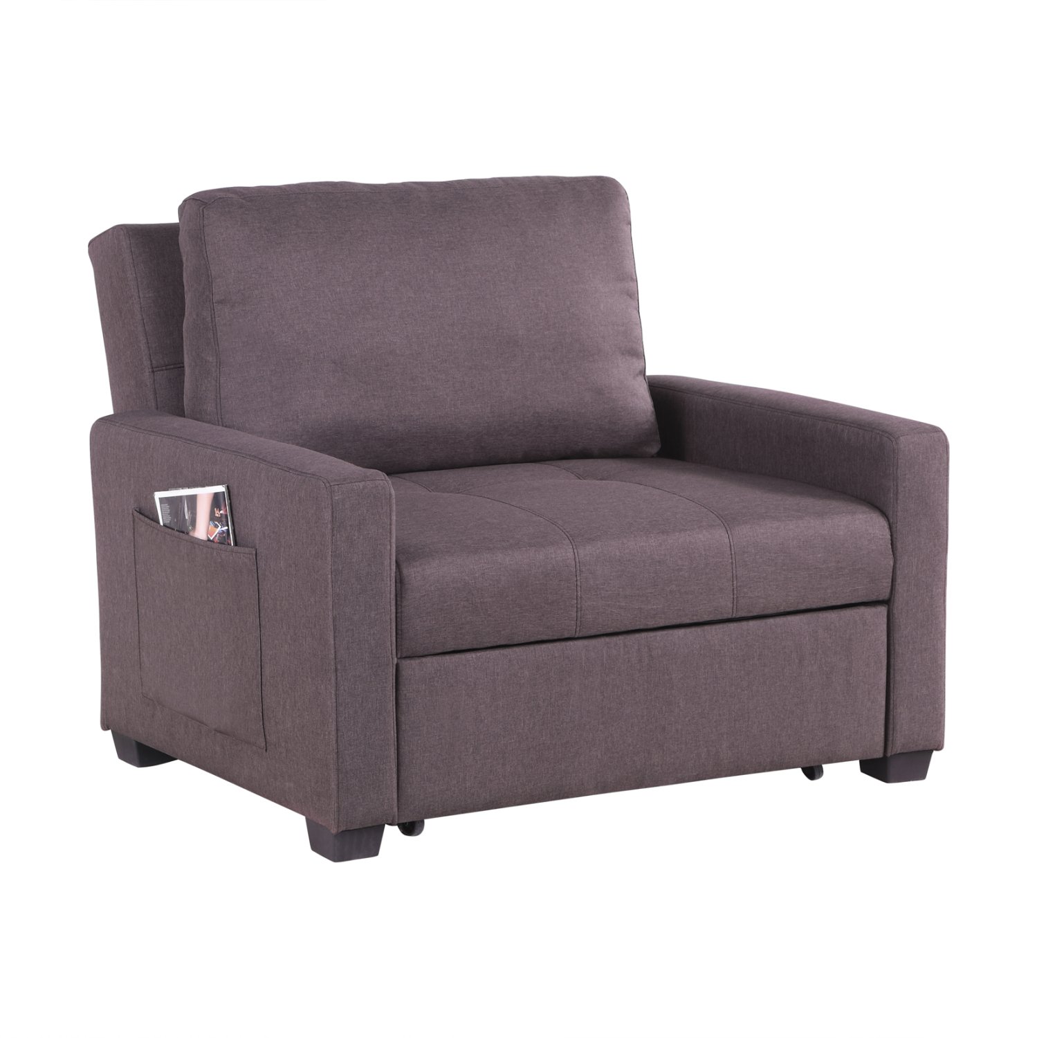 Η πολυθρόνα-κρεβάτι ΚΑΝΝΑ είναι η επιτομή της πρακτικότητας και του όμορφου στυλ. Πρόκειται για μια κοντή πολυθρόνα επενδυμένη με ΚΑΦΕ ποιοτικό ύφασμα και με φαρδύ κάθισμα. Τα μπράτσα είναι κοντά με πρακτικές θήκες για μικροπράγματα στην εξωτερική τους πλευρά, και το αναπαυτικό μαξιλάρι στην πλάτη ολοκληρώνει την σύνθεση. Το στοιχείο που την κάνει να ξεχωρίζει, όμως, είναι ότι με μια απλή κίνηση μπορεί να μετατραπεί σε κρεβάτι προσφέροντας μια ποιοτική λύση για απρόσμενες διανυκτερεύσεις, ή ακόμα και ως δεύτερο κρεβάτι σε σπίτια με περιορισμένο χώρο, όπως φοιτητικά σπίτια.