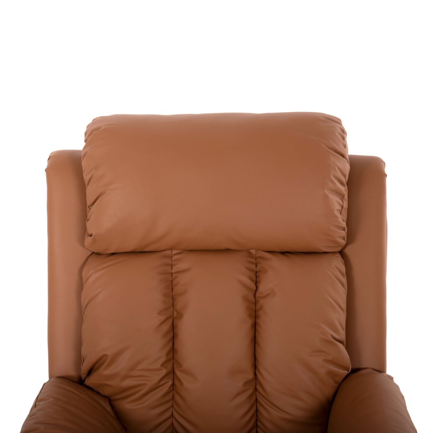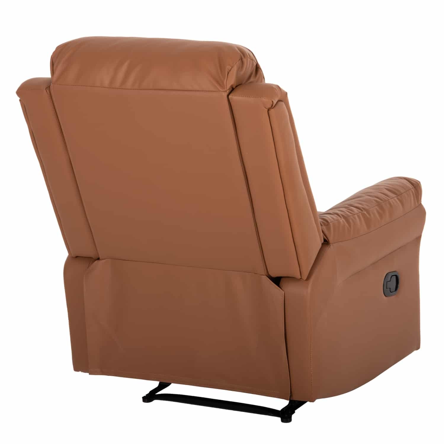 Η HAPPER με επένδυση από ΚΑΦΕ PU leather, είναι μια όμορφη πολυθρόνα που θα σας ενθουσιάσει. Οπτικά, γεμίζει τις αισθήσεις όλων με τις πλούσιες διαστάσεις και τα αναπαυτικά μαξιλάρια της. Η πλάτη είναι ψηλή ενώ το βαθύ κάθισμα και τα μπράτσα σε προκαλούν να απλώσεις τα χέρια σου επάνω στα πλούσια μαξιλάρια τους. Και όταν γυρνάτε από την δουλειά και θέλετε να χαλαρώσετε μπροστά στην τηλεόρασή σας, ή να διαβάσετε την εφημερίδα σας, ή το αγαπημένο σας βιβλίο μπροστά στο παράθυρο ή το τζάκι, τότε ο μηχανισμός relax με τον μοχλό στην εξωτερική πλευρά του μπράτσου σε συνδυασμό με το πτυσσόμενο υποπόδιο θα σας προσφέρει ανεπανάληπτες στιγμές χαλάρωσης.