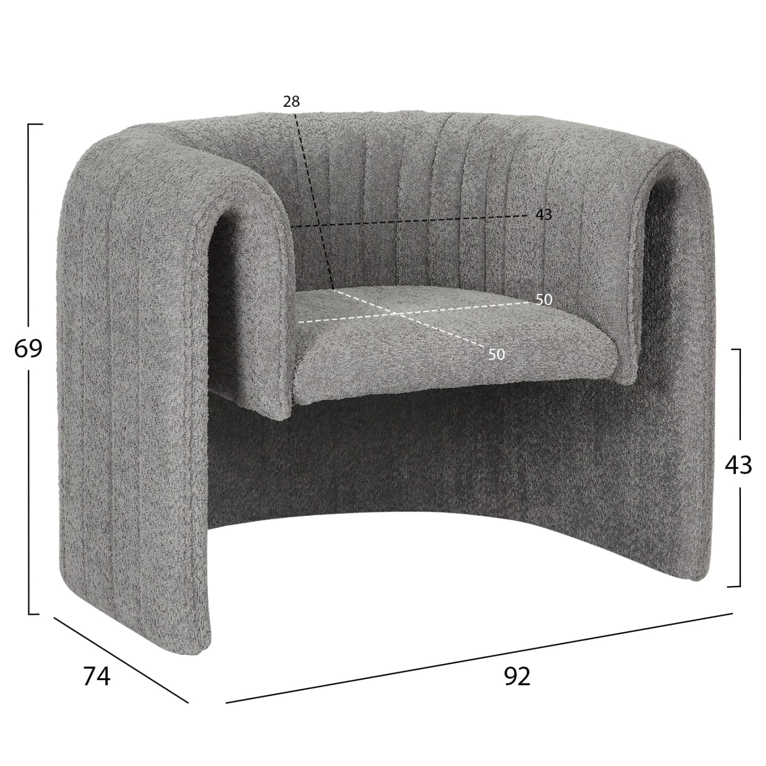 Η πολυθρόνα εσωτερικού χώρου RIKER σε ΓΚΡΙ χρώμα είναι μοντέρνα και πανέμορφη. Το χαρακτηριστικό που κάνει αυτή την πολυθρόνα να ξεχωρίζει είναι οι καμπύλες του μεταλλικού σκελετού που σχηματίζουν την ημικυκλική πλάτη με τα μπράτσα και όλη η κατασκευή φτάνει μέχρι κάτω δημιουργώντας ουσιαστικά και τα πόδια της πολυθρόνας ως φυσική συνέχεια του design. Μια πολυθρόνα που είναι σίγουρο ότι θα μαγνητίσει το ενδιαφέρον όλων.