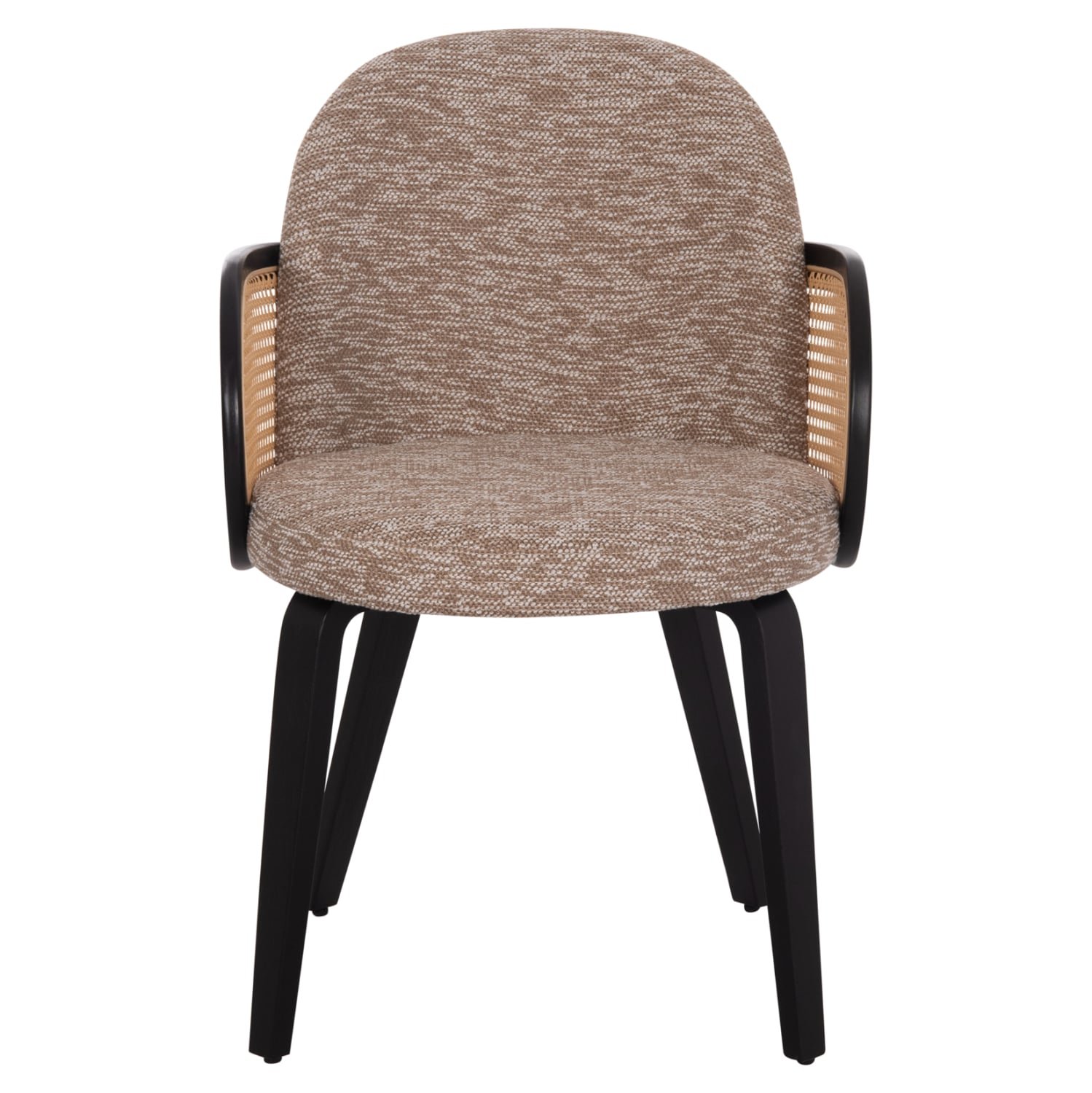 Η πολυθρόνα τραπεζαρίας BECKER αποτελεί ακόμα μια εξαιρετική πρόταση τόσο για το σπίτι, όσο και για τον επαγγελματικό σας χώρο. Ο πανέμορφος σκελετός με το συμμετρικό design είναι από plywood σε επιβλητικό ΜΑΥΡΟ χρώμα, και το χαρακτηριστικό του είναι η μπεζ «σίτα» που υπάρχει στην κατασκευή των μπράτσων. Το κάθισμα και η πλάτη είναι επενδυμένα με υπέροχο ανάγλυφο ύφασμα σε ΚΑΦΕ χρώμα, ενώ στο κάτω μέρος των ποδιών υπάρχουν ρεγουλατόροι για ρύθμιση της σταθερότητας της καρέκλας.
