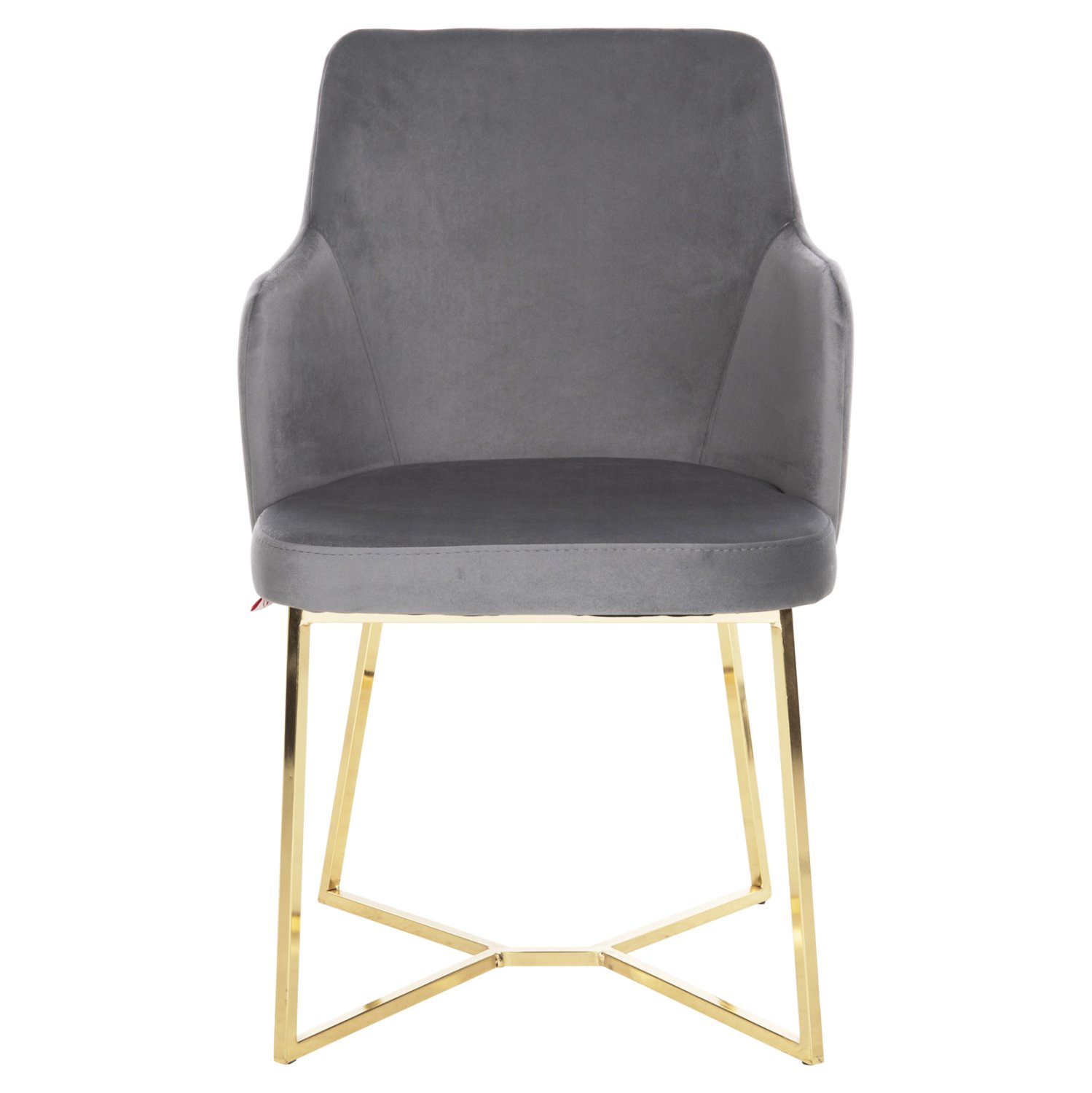 Πολυθρόνα TRIANA σε ΓΚΡΙ χρώμα με ΧΡΥΣΑ μεταλλικά πόδια. Τα 4 μεταλλικά πόδια συνδέονται μεταξύ τους με μια χιαστί διάταξη στο κάτω μέρος. Μια πολυθρόνα που δίνει κάτι το ξεχωριστό σε οποιοδήποτε επαγγελματικό χώρο. Λιτή, ποιοτική και κομψή σίγουρα θα τραβήξει τα βλέμματα. Το εξωτερικό της μεσαίου ύψους πλάτης φέρει γεωμετρικές ραφές στην βελούδινη επένδυση, πράγμα που επιτείνει τον ιδιαίτερο χαρακτήρα αυτής της πολυθρόνας. Ιδανική επιλογή για επαγγελματικούς χώρους και κυρίως για χώρους ξενοδοχείων, εστίασης, AirBnB κτλ, στους οποίους η αισθητική υπεροχή του βελούδου θα κάνει την διαφορά.