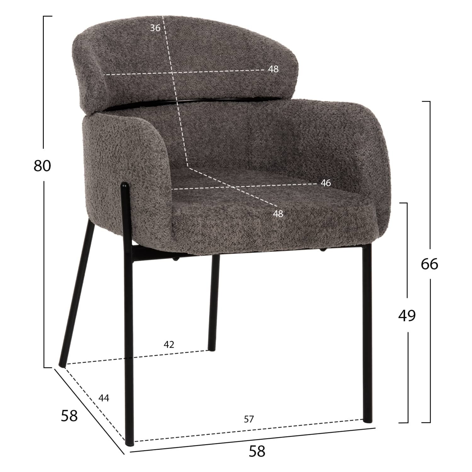 Η πολυθρόνα WOLF είναι μοντέρνα, άνετη και αγκαλιάζει το σώμα! Το κυρίαρχο χρώμα είναι το ΓΚΡΙ, ενώ τα 4 πόδια είναι σε μαύρο χρώμα. Η επένδυση της πολυθρόνας έχει γίνει με ζεστό ΜΠΟΥΚΛΕ ύφασμα που θα δώσει μια διαφορετική όψη στον χώρο σας. Πρόκειται για μια πρόταση όμορφη, κυρίως για την τραπεζαρία σας, αλλά και που θα ταιριάξει σχεδόν παντού!