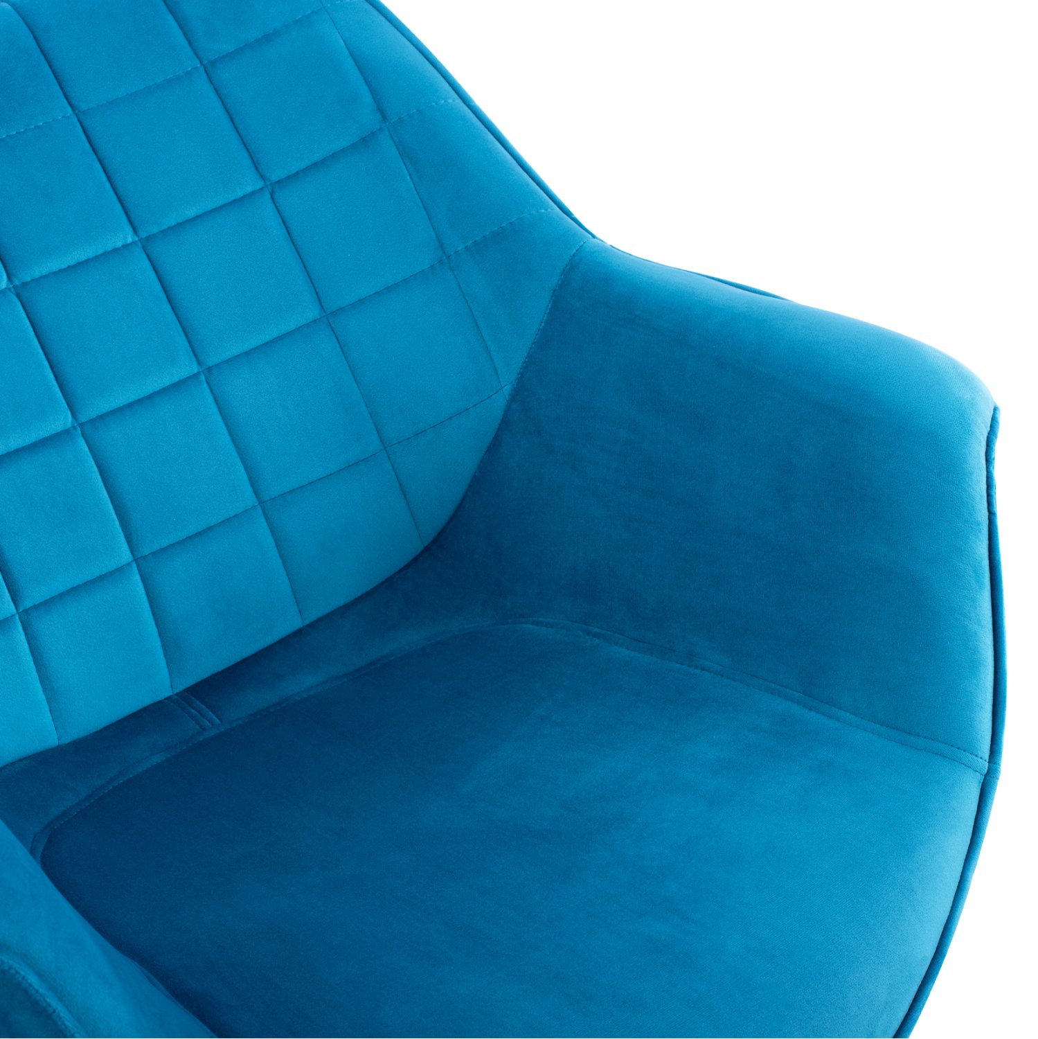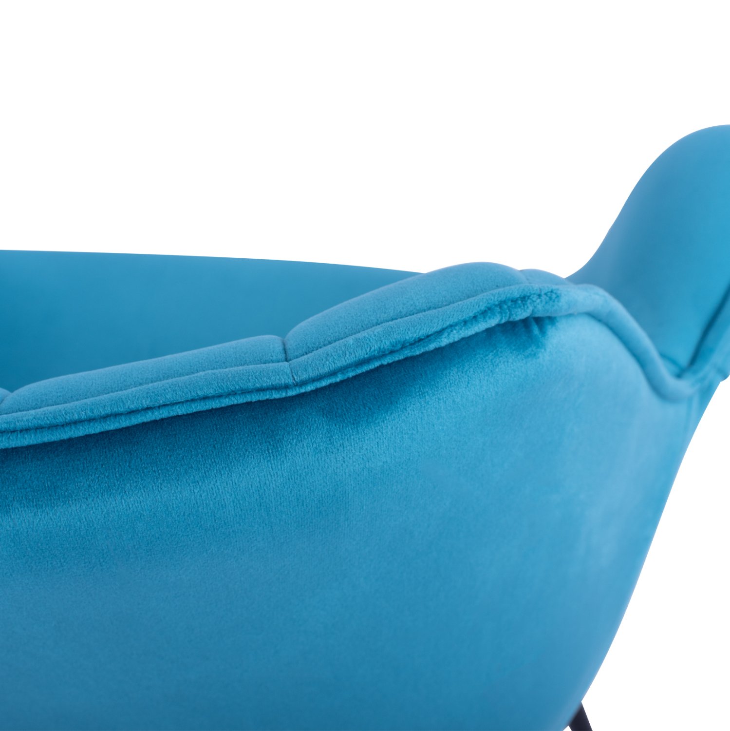 Το πολυθρονάκι BENJAMIN είναι επενδυμένο με βελούδο σε τιρκουάζ απόχρωση., ενώ τα πόδια είναι μεταλλικά σε μαύρη απόχρωση.