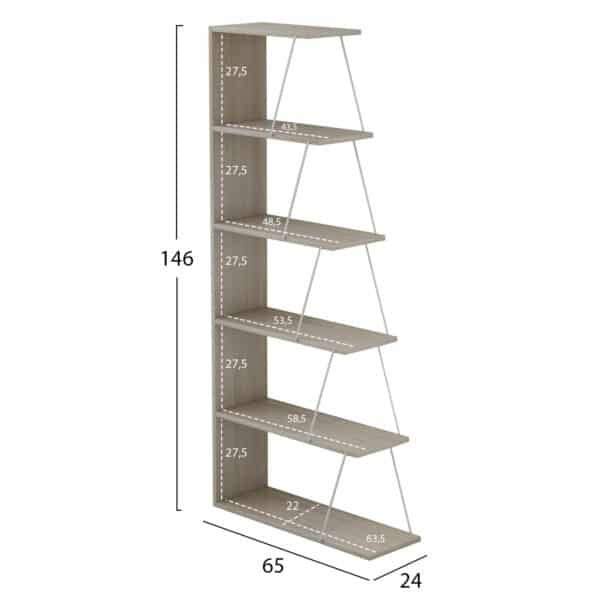 ΒΙΒΛΙΟΘΗΚΗ ΜΙΝΙ TARS HM2241.20 ΓΚΡΙ ΜΕΛΑΜΙΝΗ-ΜΑΥΡΕΣ ΜΕΤΑΛ. ΒΕΡΓΕΣ 65×22-24×146Υεκ.