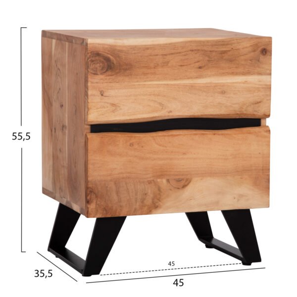 ΚΟΜΟΔΙΝΟ ALICIA ΜΕ 2 ΣΥΡΤΑΡΙΑ HM8360.21 ΜΑΣΙΦ ΞΥΛΟ ΑΚΑΚΙΑΣ-ΜΕΤΑΛΛΟ 45x35x56Yεκ.