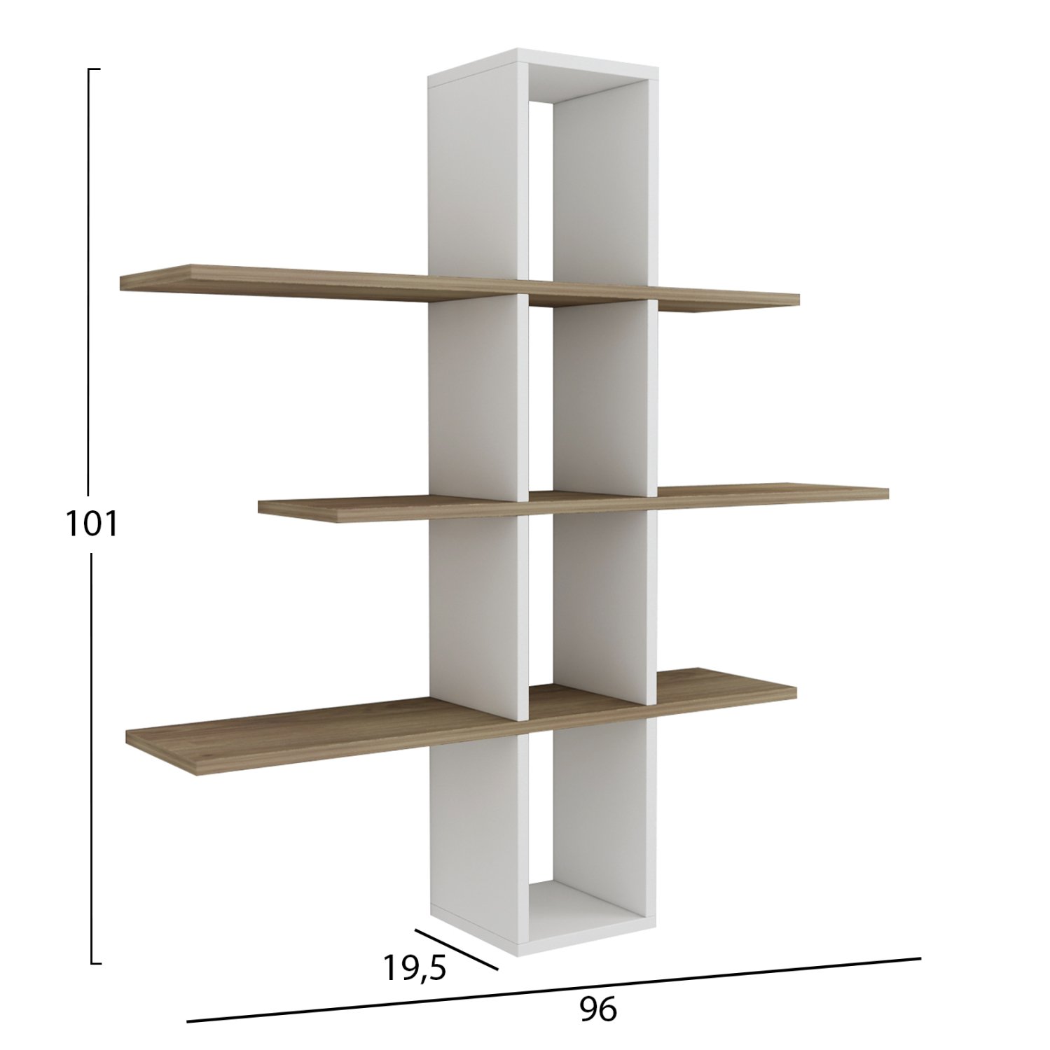 Η ραφιέρα τοίχου DOMINIC είναι μια μοντέρνα πρόταση για το γραφείο σας ή οπουδήποτε αλλού θέλετε να τοποθετήσετε ένα τέτοιο όμορφο έπιπλο. Διαθέτει μια κεντρική στήλη σε ΛΕΥΚΟ χρώμα και 3 ράφια που την διαπερνούν σε ασύμμετρη διάταξη σε ΦΥΣΙΚΟ χρώμα. Συνδυάστε το με ένα ωραίο φωτιστικό δαπέδου ή μια πολυθρόνα με τραπεζάκι και φτιάξτε μια πανέμορφη γωνιά χαλάρωσης.