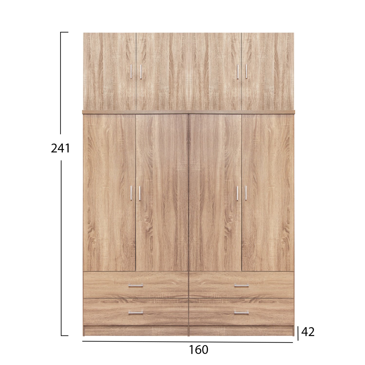 Ντουλάπα μελαμίνης τετράφυλλη με πατάρι σε sonama απόχρωση.