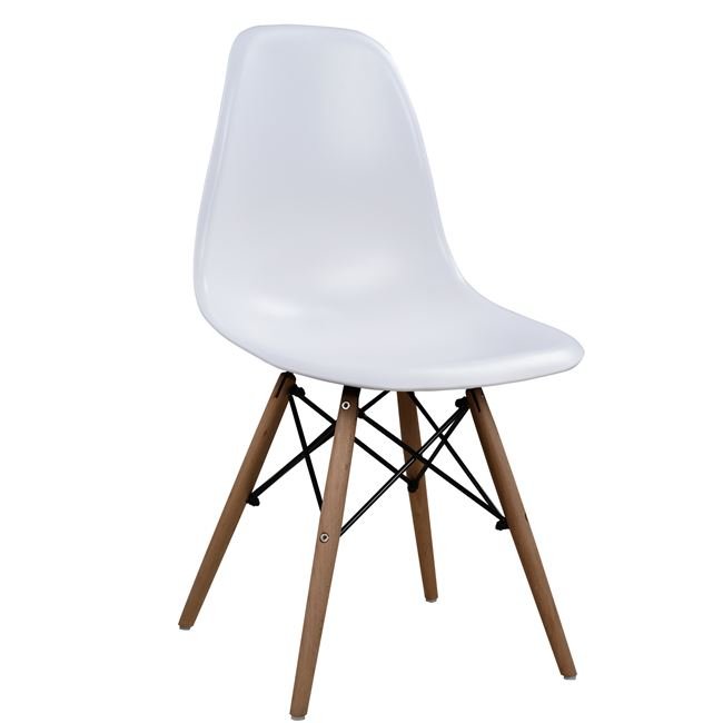 Τέσσερις Καρέκλες απο πολυπροπυλένιο σε mat υφή και λευκό χρώμα.Τα πόδια της καρέκλας είναι απο μασίφ ξύλο. Η καρέκλα διατείθεται σε πακέτο.