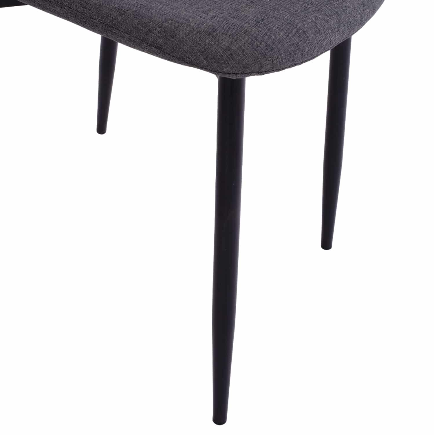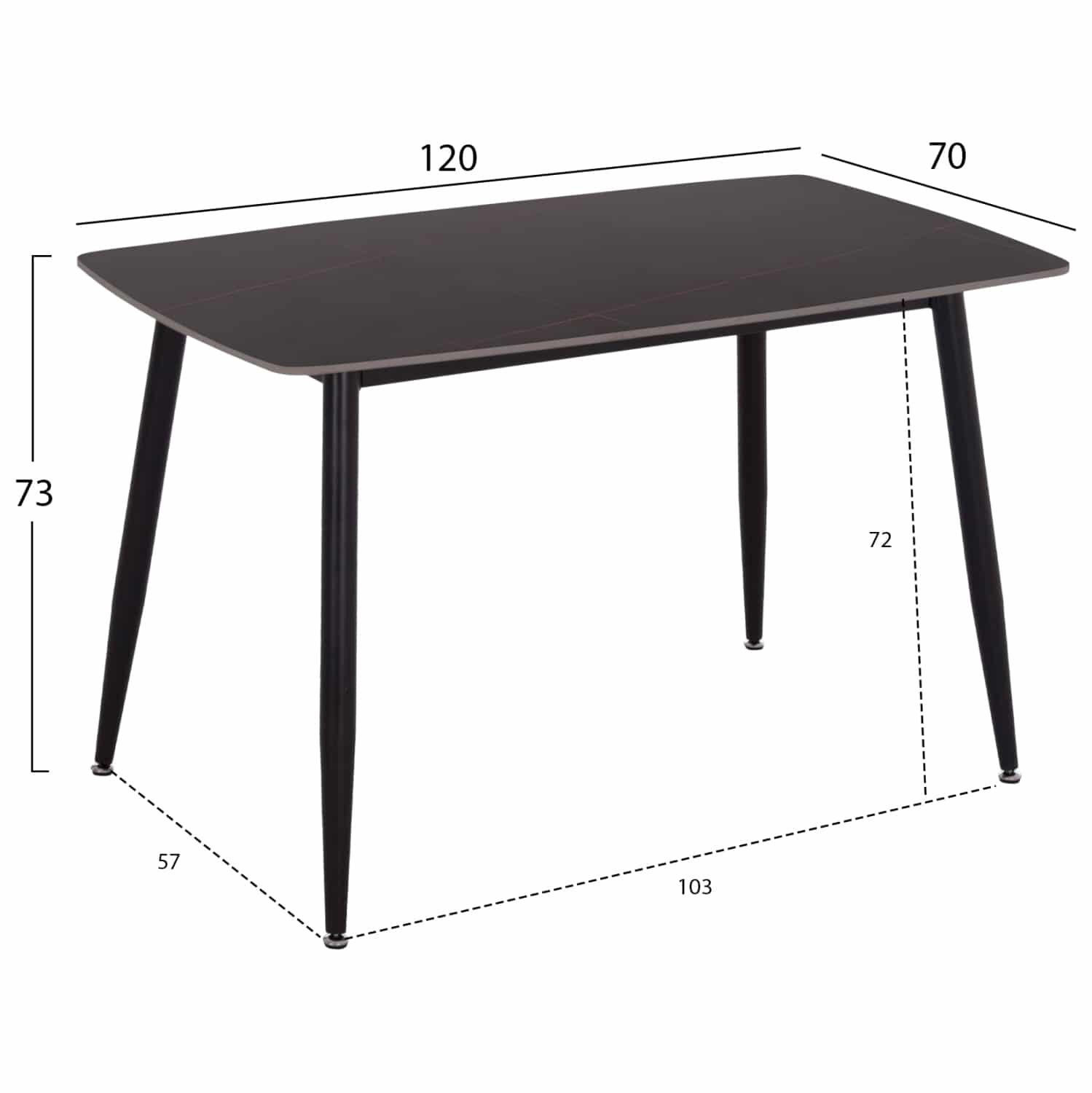 Ένα ορθογώνιο τραπέζι με σκελετό μεταλλικό σε ΜΑΥΡΟ χρώμα και κεραμική επιφάνεια με όψη ΜΑΥΡΟΥ ΜΑΡΜΑΡΟΥ, και 4 καρέκλες με πλάτη και κάθισμα με επένδυση από ύφασμα σε ΓΚΡΙ χρώμα και μεταλλικά πόδια σε ΜΑΥΡΟ χρώμα.