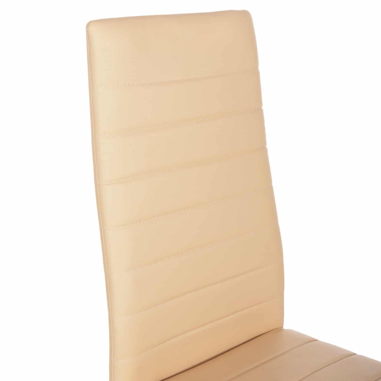 Ένα ορθογώνιο τραπέζι με σκελετό μεταλλικό σε ΜΑΥΡΟ χρώμα και κεραμική επιφάνεια με όψη ΛΕΥΚΟΥ ΜΑΡΜΑΡΟΥ, και 4 καρέκλες με ψηλή πλάτη και κάθισμα με επένδυση από συνθετικό δέρμα PU σε ΚΡΕΜ χρώμα και μεταλλικό σκελετό σε ΜΑΥΡΟ χρώμα.