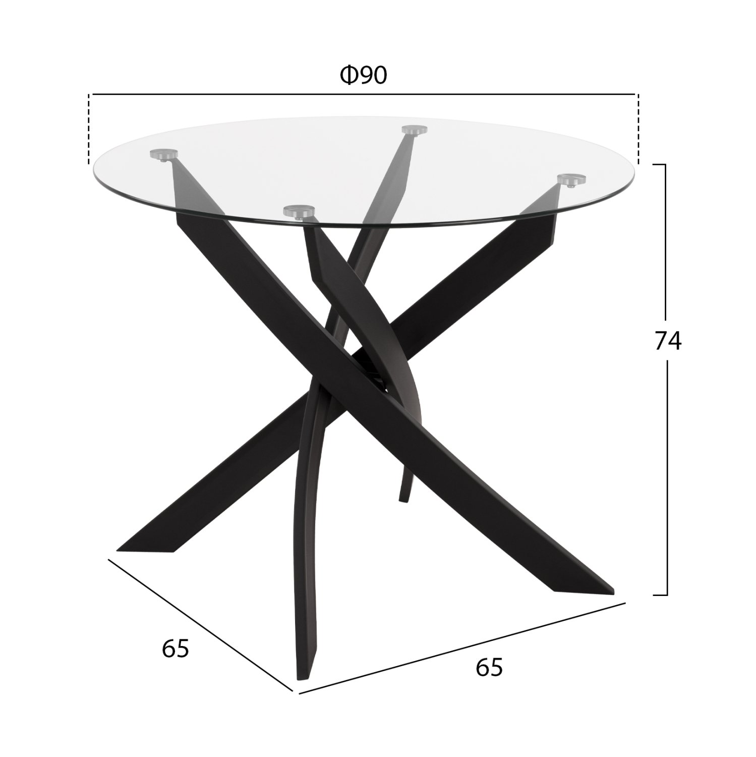 Ελκυστικό και μοντέρνο τραπέζι με μεταλλικά πόδια βαμμένα σε μαύρη απόχρωση και γυάλινη επιφάνεια.