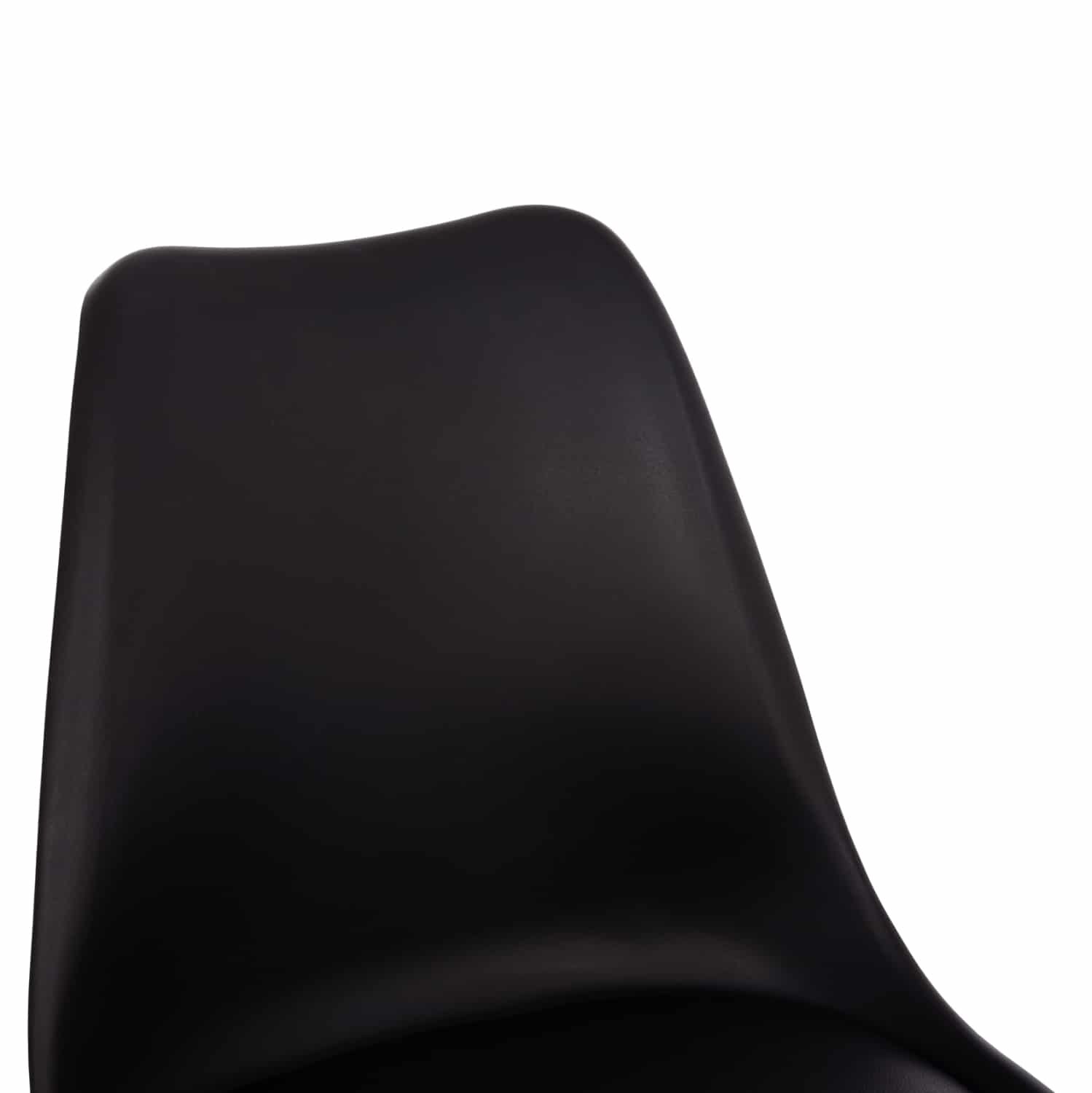 Ένα ορθογώνιο τραπέζι με σκελετό από ξύλο οξιάς σε ΦΥΣΙΚΟ χρώμα και επιφάνεια από MDF σε ΣΚΟΥΡΟ ΓΚΡΙ χρώμα, και 4 καρέκλες με πλάτη πολυπροπυλενίου και κάθισμα με επένδυση PU σε ΜΑΥΡΟ χρώμα με πόδια οξιάς σε φυσικό χρώμα ΞΥΛΟΥ.