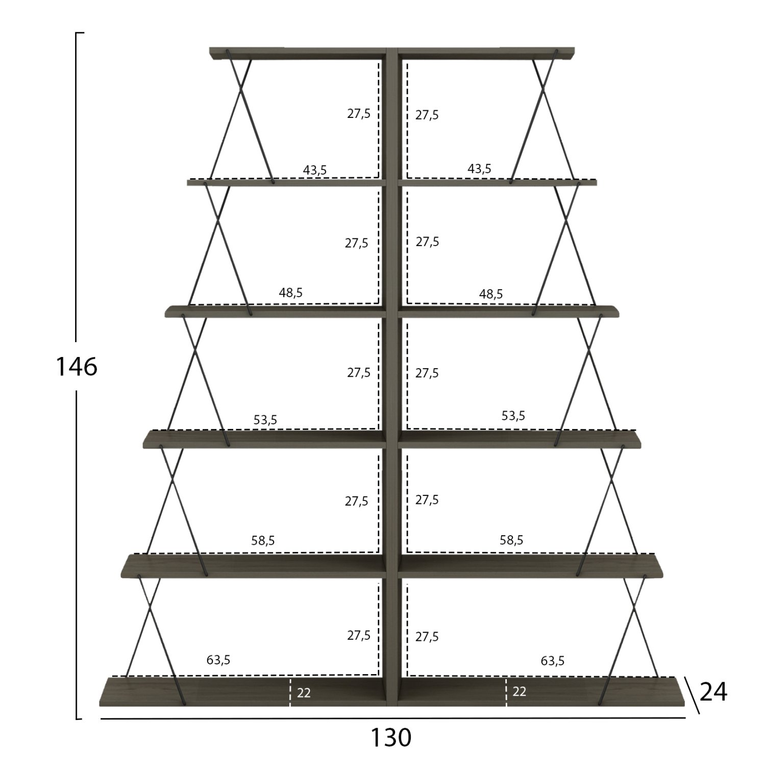 Διαστάσεις ραφιού Ε: 63,5x22x27,5Υ εκ.