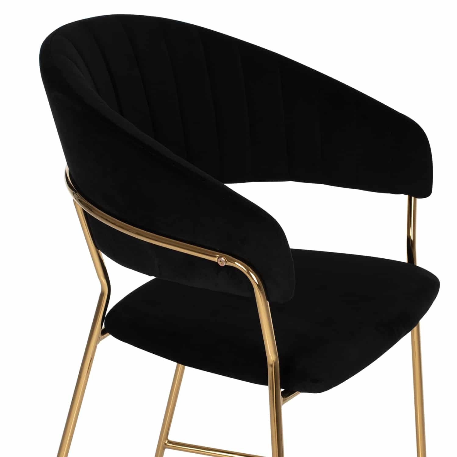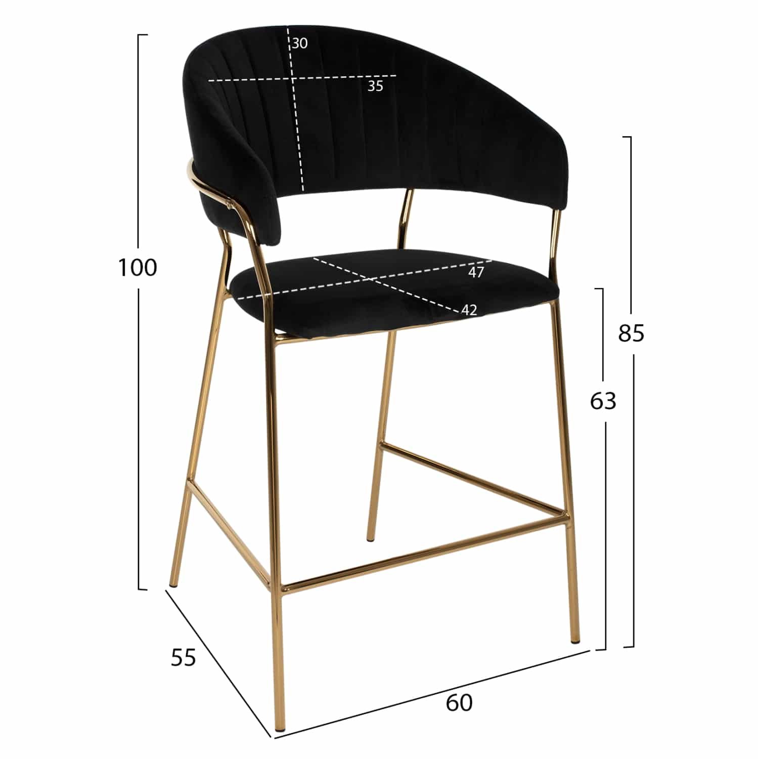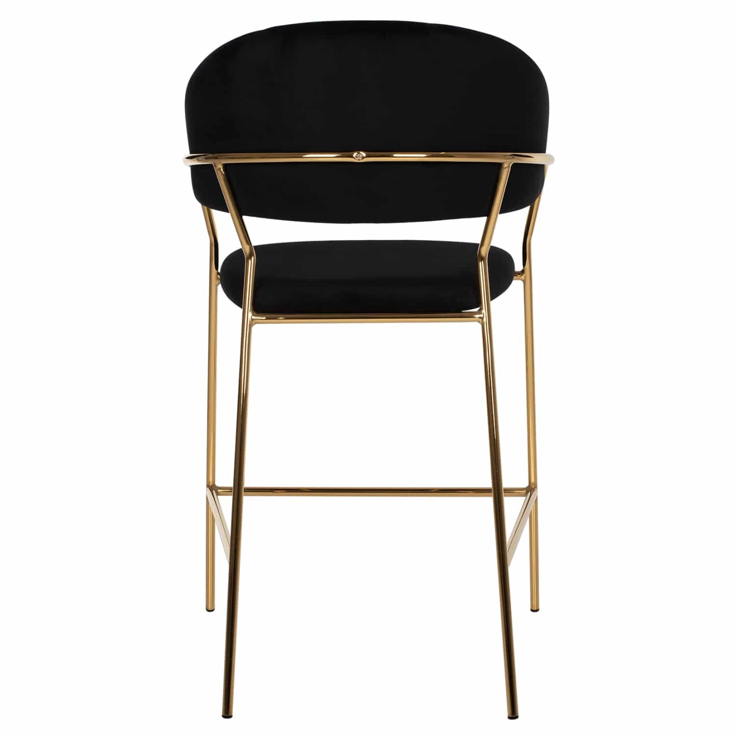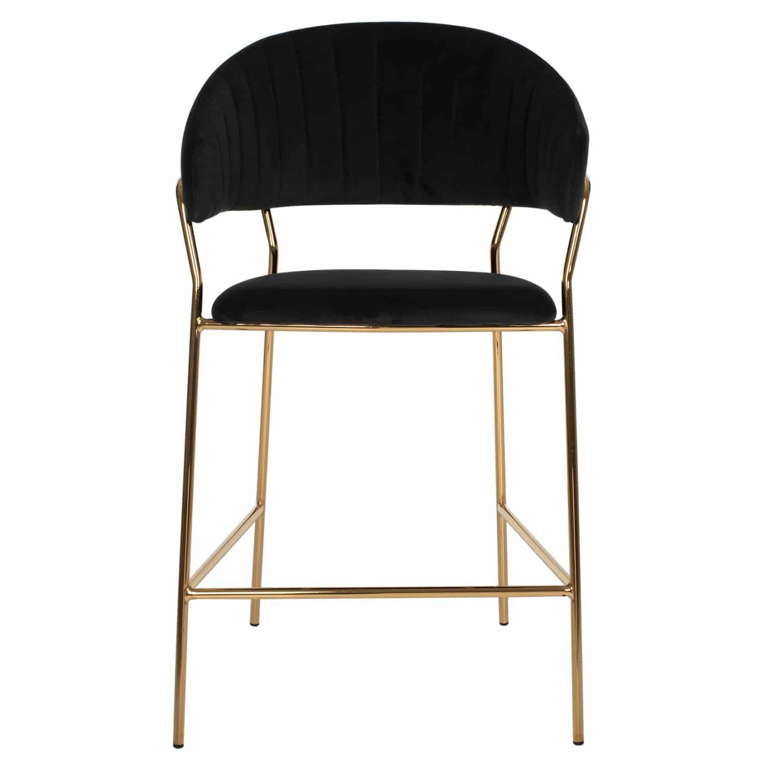 Γνωρίστε το THEODORE. Ένα σκαμπό με ΜΑΥΡΟ βελούδινο ύφασμα για μπαρ, που έχει όλα όσα θα θέλατε από ένα τέτοιο έπιπλο. Το THEODORE είναι λιτό, πραγματικά ποιοτικό και κομψό στην όψη, και σίγουρα τραβάει τα βλέμματα. Είναι μεσαίου ύψους με ημικυκλική πλάτη και ο χρυσός μεταλλικός σκελετός καταλήγει σε 4 πόδια τα οποία, όμως, ενώνονται με μια μεταλλική βέργα εμπρός και στα πλαϊνά. Αυτή η βέργα χρησιμεύει ως «σκαλοπάτι» για να ακουμπάτε τα πόδια δίνοντας μεγαλύτερη άνεση στο σκαμπό. Το κάθισμα είναι αναπαυτικό και το σίγουρο είναι ότι αυτό το σκαμπό θα αποτελέσει το κέντρο του ενδιαφέροντος όπου κι αν τοποθετηθεί.