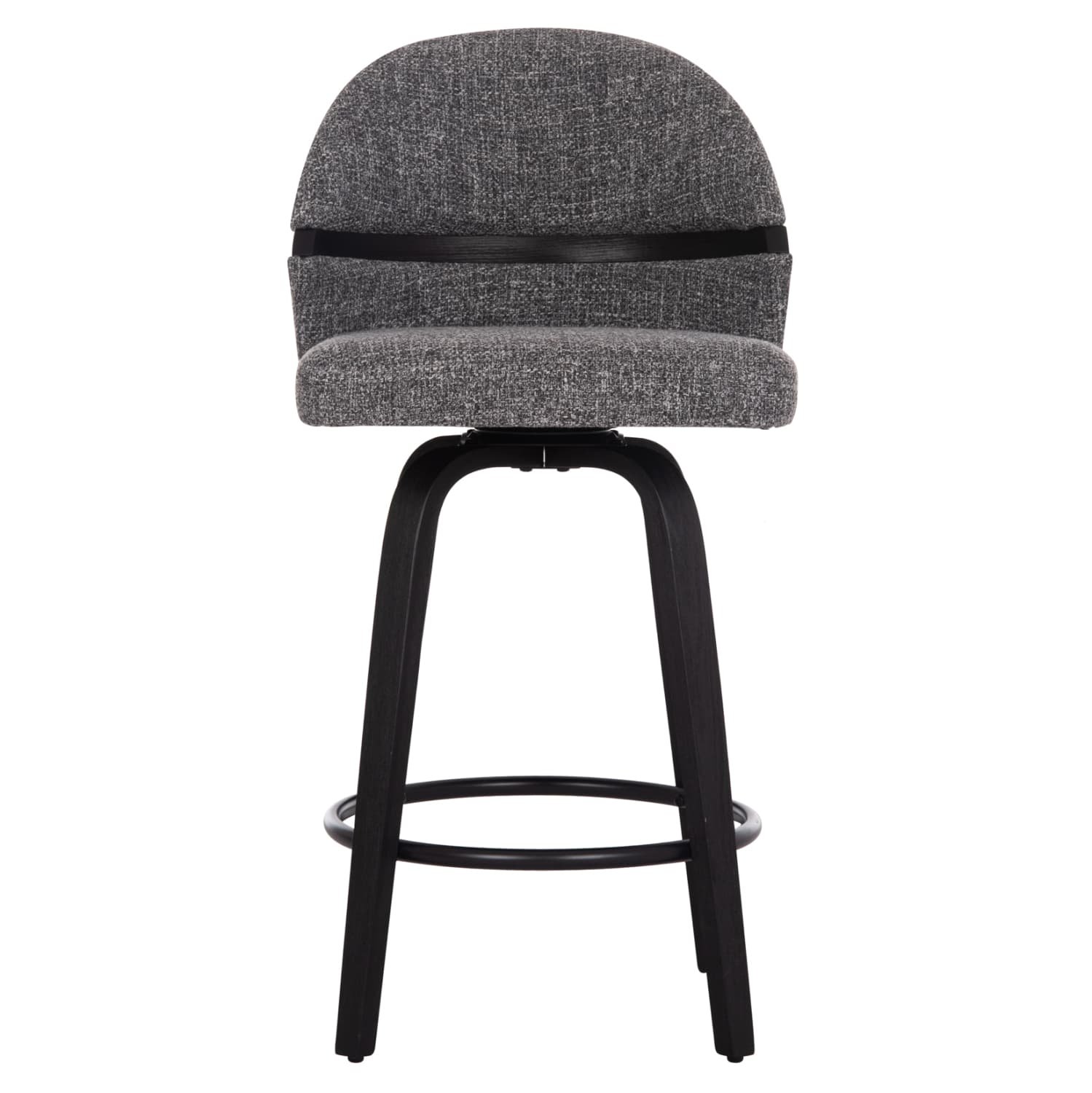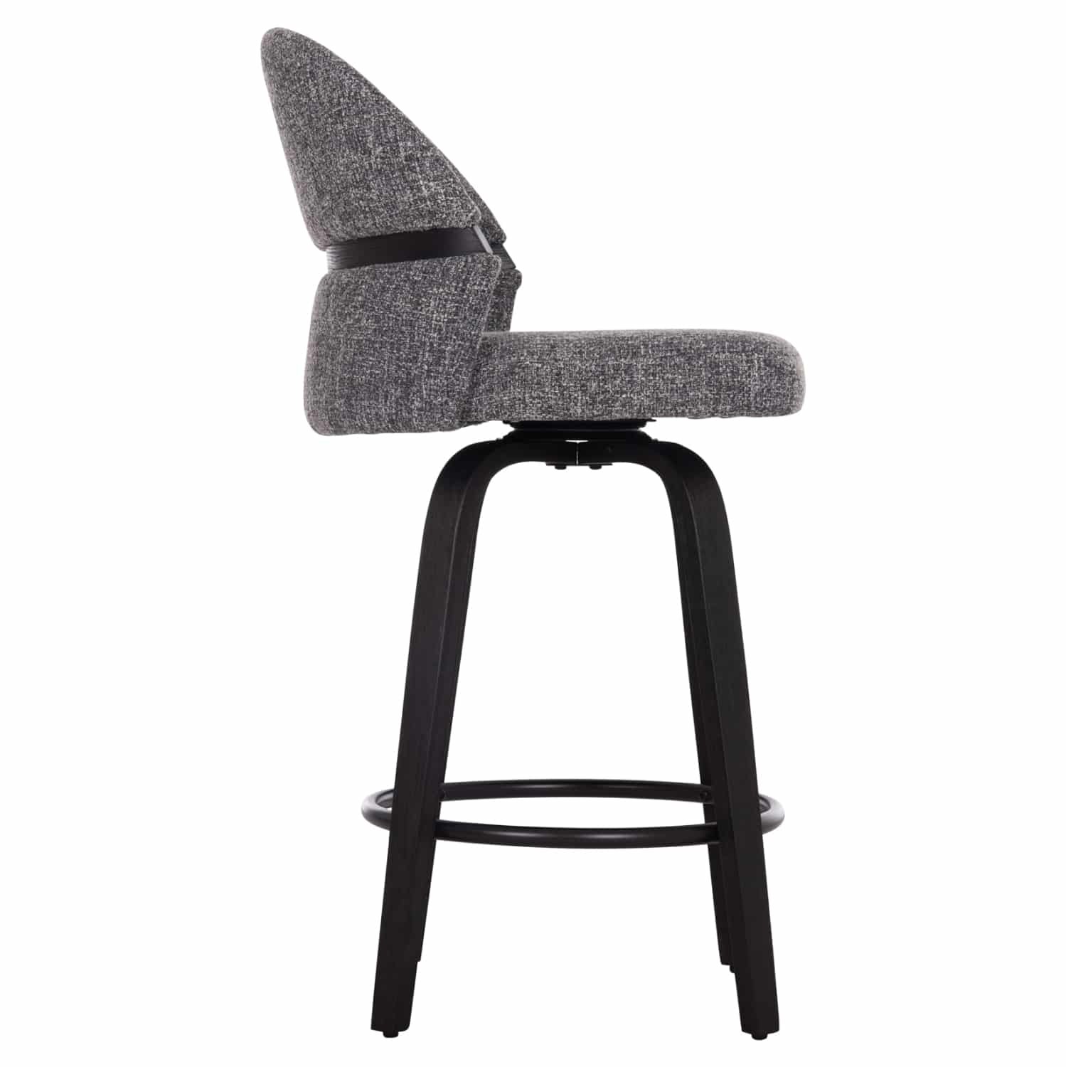 Το περιστρεφόμενο σκαμπό μπαρ μεσαίου ύψους DEKKER αποτελεί μια νέα πρόταση για τον επαγγελματικό σας χώρο. Ο σκελετός είναι από plywood σε ΜΑΥΡΟ χρώμα, ενώ το κάθισμα και η πλάτη είναι επενδυμένα με υπέροχο ανάγλυφο ύφασμα σε ΓΚΡΙ χρώμα. Στο κάτω μέρος των ποδιών υπάρχουν ρεγουλατόροι για ρύθμιση της σταθερότητας του σκαμπό, ενώ διαθέτει και υποπόδιο.