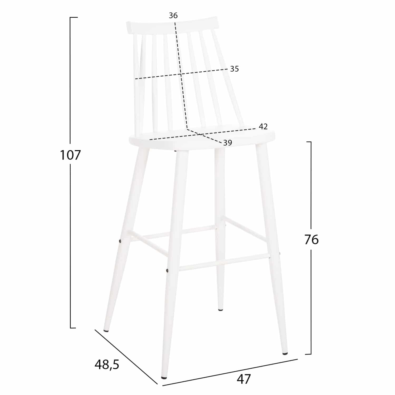 ΣΚΑΜΠΟ ΜΠΑΡ ΨΗΛΟ VANESSA HM8459.11 ΛΕΥΚΟ PP & ΛΕΥΚΑ ΜΕΤΑΛ.ΠΟΔΙΑ 47×48,5×107Υεκ.