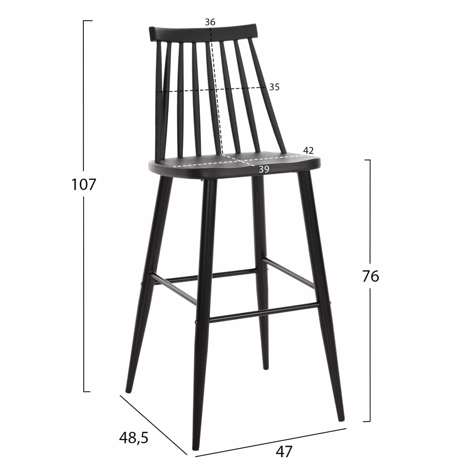 ΣΚΑΜΠΟ ΜΠΑΡ ΨΗΛΟ VANESSA HM8459.12 ΜΑΥΡΟ PP & ΜΑΥΡΑ ΜΕΤΑΛ.ΠΟΔΙΑ 47×48,5×107Υεκ.