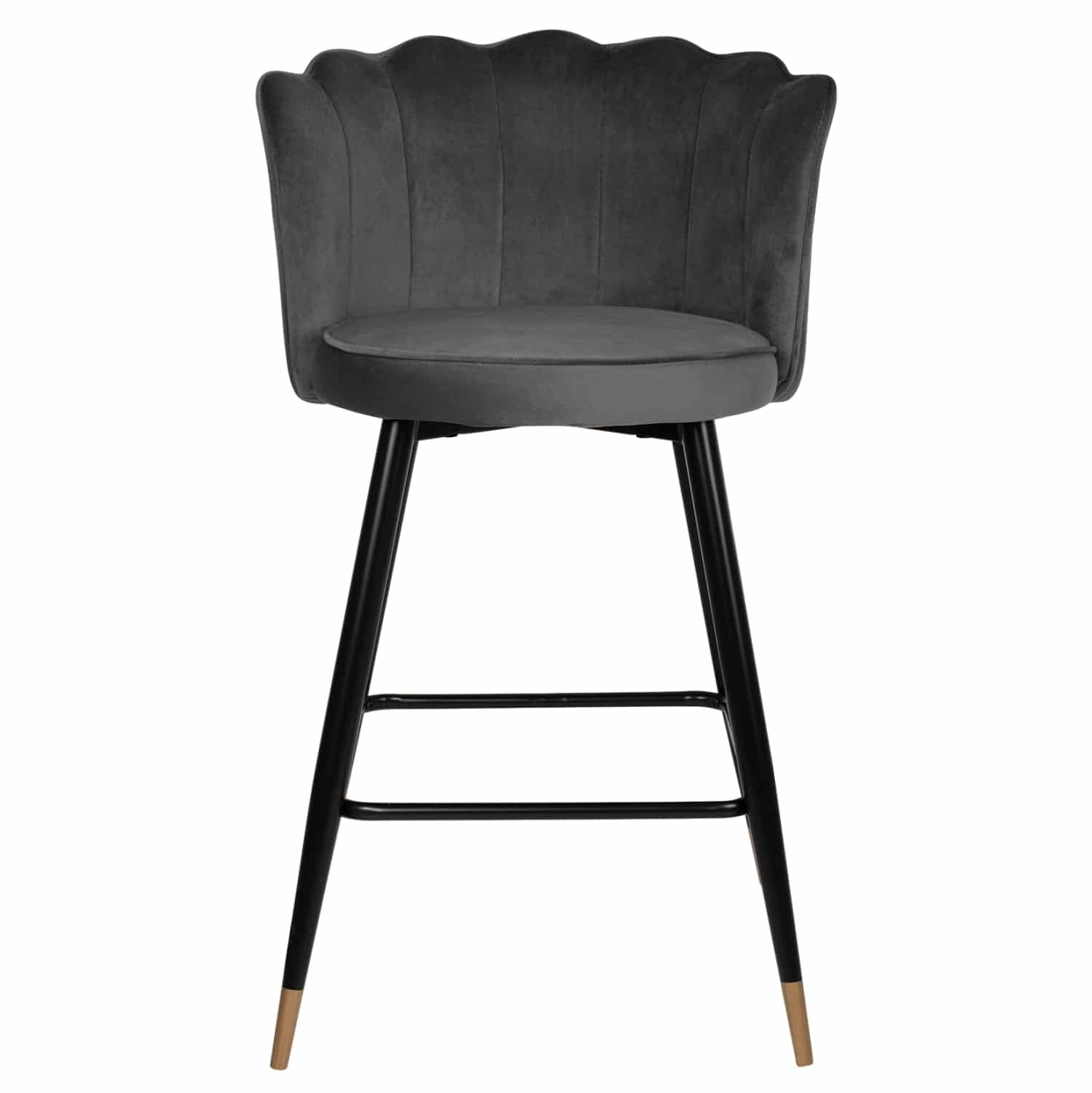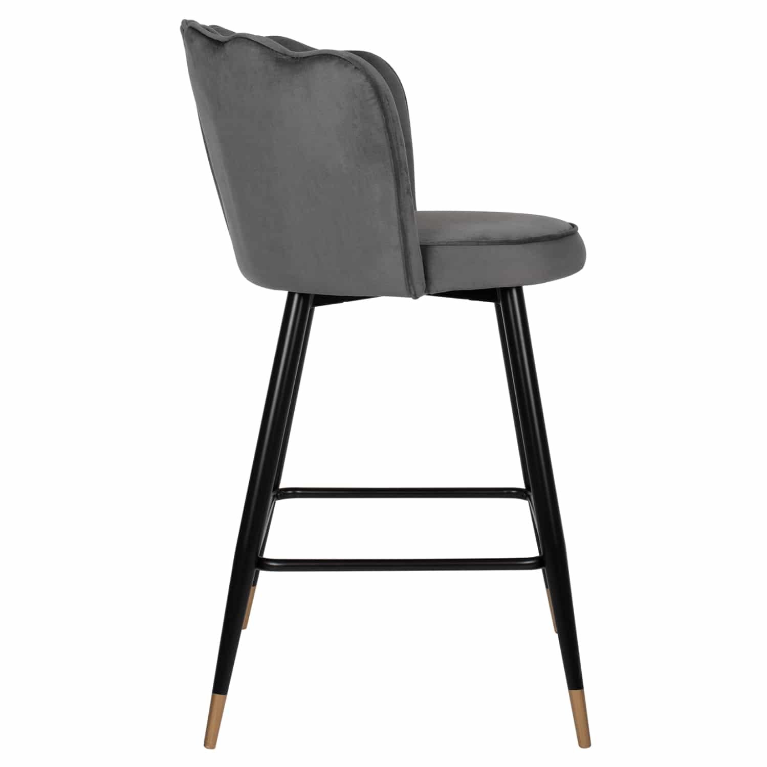 Επαγγελματικό σκαμπό bar «VESNA» σε ΓΚΡΙ χρώμα με μαύρο μεταλλικό σκελετό. Τα μεταλλικά πόδια ενώνονται μεταξύ τους περίπου στη μέση τους με μια μαύρη μεταλλική ράγα. Το «VESNA» είναι λιτό, ποιοτικό και κομψό στην όψη, και σίγουρα τραβάει τα βλέμματα με το βελούδινο ύφασμα με το οποίο είναι επενδυμένο. Είναι μεσαίου ύψους με πλάτη, η οποία έχει την όψη ανοιχτού όστρακου δίνοντας μια ιδιαίτερη αισθητική στον χώρο.